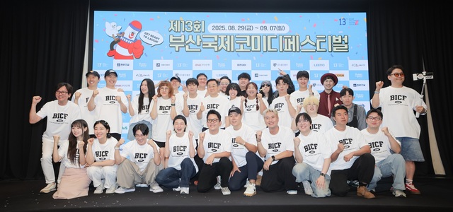 "공연하는코미디언들이설무대활성화할것"29일~9월7일까지부산서진행1일오후서울마포구스탠포드호텔에서열린'제13회부산국제코미디페스티벌(BICF)'기자회견에서참석자들이포즈를취하고있다./부산국제코미디페스티벌조직위원회[더팩트|김명주기자]빵빵터지는웃음으로무더위를시원하게날릴개그의향연이펼쳐진다.올해로13회를맞는'부산국제코미디페스티벌'이'개그콘서트'팀의오프닝무대부터안영미의스탠드업코미디,이홍렬의북콘서트,개가수(개그맨과가수의합성어)들의공연까지선사한다.아울러사상처음으로공모를통해선정된자율참여작무대를선보이며신선한모습도더한다.'제13회부산국제코미디페스티벌'(BICF,이하'부코페')기자회견이1일오후4시서울마포구스텐포드호텔에서열렸다.현장에는BICF조직위원회(김준호집행위원장,최대웅부집행위원장,황덕창수석프로그래머,조윤호프로그래머),개그콘서트with(위드)부코페(신윤승조수현박은영나현영유연조서성경),만담어셈블@부코페(구정모유영우오디디시옷시옷우다온전예원양혜원),변기수의해수욕쇼(변기수탁(배치기)송영길김태원),서울코미디올스타스(김동하박철현),썰피소드(이광섭이원구),안영미쇼-전체가(슴)관람가(안영미),희극상회(임종혁장윤석),폐막공연-나는개가수다(김나희이상호이상민),북콘서트·폐막공연MC(이홍렬)등총32명이참석해'부코페'를소개하며페스티벌이전할웃음을자신했다.'부코페'는2013년시작된아래국내외코미디아티스트들의공연과독창적인프로그램을통해K-코미디의저변확대와글로벌화에앞장서고있는행사다.초기에는KBS'개그콘서트'출연자들이주축이됐지만이후다양한방송사출신개그맨은물론유튜브와소셜미디어에서활약중인코미디언들까지무대를함께했다.이번'부코페'는오는29일개막식을시작으로9월7일까지10일간진행된다.올해로13주년을맞은'부코페'에는대한민국개그계를이끌어온스타개그맨들과신선한크리에이터그리고세계각국의유쾌한코미디아티스트들이총출동한다.국내공연팀으로는'개그콘서트with부코페''만담어셈블@부코페''서울코미디올스타스''희극상회''변기수의해수욕쇼'등이출격하고해외공연팀으로는'벙크토피아''웍앤올''최강일본개그쇼''MICF로드쇼부산'등이출연한다.'제13회부산국제코미디페스티벌(BICF)'기자회견에참석한코미디언김준호부산국제코미디페스티벌조직위원장이포즈를취하고있다./부산국제코미디페스티벌조직위원회이날기자회견은그룹배치기멤버탁의축하공연으로시작됐다.'변기수의해수욕쇼'에참여하는탁은지난2006년배치기가발매한'마이동풍'과2013년공개한'눈물샤워'를부르며분위기를뜨겁게달궜다.이어자율참여작으로참가하는함서율이마임과코미디를결합한'더해프닝쇼'를펼치며'부코페'의성공을기원했다.본격적인기자회견에서김준호집행위원장은"응원해주셔서13회까지올수있었다.많은관심부탁드린다"고소감을밝혔다.이어조윤호프로그래머는"시원한재미와힐링이가득한10일간의축제가될것"이라고강조했다.북콘서트진행과폐막식MC를맡은이홍렬은작고한코미디선배들의이름을읊으며감격스러운마음을전했다.그는"제가보면서꿈을키웠던선배들은다돌아가시고제가이제선배가됐다.선배들에게이렇게멋진후배들이있다는것을자랑해보고싶다.이자리에있는수많은후배가코미디를이어오고있다.이자리를빌려서후배들에게고맙다고말하고싶다"고말하며울컥했다.이번'부코페'개막식의오프닝공연은'개그콘서트'팀이장식한다.관련해김준호집행위원장은"대한민국에개그맨들이하는개그프로그램은'개그콘서트'가유일하다고생각했다.상징적인의미로오프닝을담당했으면좋겠다고생각했다"고이야기했다.'안영미쇼-전체가(슴)관람가'로무대에나서는안영미는출산후오프라인공연이처음이다.그는"19금쇼를너무하고싶었다.결혼전부터꿈꿨다.그때는금기시되는것들이많아서두려움이있었는데아이를낳고육아를하면서용기를내게됐다"고고백했다.그는공연제목과관련해"가슴춤을추는공연이라고생각하는분들이계신데아니다.그간방송에서꺼내지않았던안영미의가슴속에있었던다양한이야기를푸는유쾌하지만불편하지않은스탠드업코미디"라고설명했다.북콘서트를진행하는이홍렬은"전유성선배와정선희와함께진행한다.후배들을위해서무엇인가해보고싶었다.6개월동안코미디언들이쓴책120권을모았다.이에대해서소개할예정이고미니강연도연다.어떤북콘서트보다값진무대가될것"이라고말해기대감을높였다.아울러개가수들의공연이펼쳐지는폐막식도이끄는그는"박성호김나희손헌수윙크김재롱등다양한개가수들이나와서폐막식을장식한다"고설명했다.개가수로무대에참여하는이상민은"폐막식공연을열심히준비하고있다.다재다능하고재밌는행복한무대를보여드리겠다"고,김나희는"개가수라는타이틀을달고공식적으로무대에서는것은처음이다.의미가있는것같다.축제에음악이빠질수없다고생각한다.기대에부응하겠다"고말했다.그룹배치기멤버탁,코미디언변기수안영미(왼쪽부터)가'제13회부산국제코미디페스티벌'기자회견에참석해다양한이야기를전했다./부산국제코미디페스티벌조직위원회