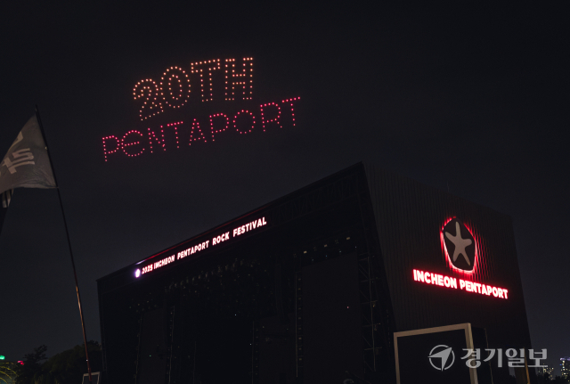 인천펜타포트락페스티벌20주년을기념하는드론쇼가펼쳐지고있다.황영식기자20주년을맞는인천펜타포트락페스티벌의첫날이4만5천여락마니아들의뜨거운열정속에내일을기약하며마무리했다.저녁메인무대의문을연장기하는특유의딕션으로관람객들을집중시켰고,결성30주년을맞은크라잉넛은그열기를이어받아종반으로치닫는펜타포트의밤을더욱달궜다.1일인천연수구송도달빛축제공원에서열린인천펜타포트락페스티벌1일차가성황리에마무리했다.이날은헤드라이너인아시안쿵푸제너레이션(ASIANKUNG-FUGENERATION)무대에앞서개막식이열렸다.유정복인천시장은펜타슈퍼루키대상을받은컨파인드화이트밴드와함께무대에올라20주년을맞은‘2025인천펜타포트락페스티벌’의시작을알렸다.유시장은“락페에온여러분모두환영한다”며“날씨가뜨거운데,락페의열기로더운여름을시원하게날려버리자”고말했다.인천펜타포트락페스티벌개막식에참석한내빈들이기념사진을촬영하고있다.윤원규기자개막식에는유시장과함께정해권인천시의회의장,백현인천관광공사사장,신항철경기일보대표이사회장,이순국대표이사사장,김기태인천본사사장등이참석했다.유시장의인사말에이어지난2024년과같지만다른드론쇼가펼쳐졌다.드론쇼는지난해와같은지구본을형상했지만,올해는글로벌축제로발돋움한락페스티벌의위상을담아세계각지에서인천으로모이는이벤트를담았다.특히올해는‘건강한락놀이’를적은깃발을만들어관람객들의환호를이끌어냈고,‘20THPENTAPORT’를끝으로섬세하면서도화려한쇼를선보였다.장기하가뜨거운무대를펼치고있다.황영식기자■장기하,아시안쿵푸제너레이션…1일차메인무대의대미,누구보다뜨겁게달궈오후7시,‘저녁메인무대’의첫순서는장기하가장식했다.장기하의첫곡‘그건니생각이고’는대낮더위에지친관객들을다시일으켰다.장기하가노래를부르기시작하자관객들은환호성과함께무대앞으로달려나갔다.장기하가특유의독특한음색과또박또박한딕션으로관객들을집중시킨다.시원해진날씨와속시원하게하는장기하노래의가사는관객들을열광케했다.빠른박자의드럼과기타소리는관객들을사로잡았다.장기하가이날무대의4번째곡인‘부럽지가않어’를부르기시작하자관객들은기쁨의소리를지른다.장기하노래후렴구를실컷따라부르기도한다.또장기하가‘달이차오른다,가자’를부르니관객들은모두하나되어락앤롤손모양을하고팔을위아래로흔든다.장기하는“기를모아달라.손을들어달라”고말하며관객들의호응을이끈다.무대앞관객들은장기하의무대를오래기억하고자휴대전화를들어동영상을찍기도한다.수백명의관객들은무대앞에원모양을만들고,둘레를따라뛴다.둘레를따라뛰는이들과하이파이브를하는관객들,손가락으로하늘을찌르며춤을추는관객들도있다.장기하는‘그건니생각이고’,‘해’,‘괜찮아요’,‘부럽지가않어’,‘빠지기는빠지더라’,‘밀수’,‘좋다말았네’,‘내사람’,‘ㅋ’,‘그렇고그런사이’등을부르며1시간동안관객들을들뜨게했다.아시안쿵푸제네레이션이열띤무대를펼치고있다.김도현기자오후9시15분께화려한조명과함께1번째날의헤드라이너‘아시안쿵푸제네레이션’(ASIANKUNG-FUGENERATION)이등장한다.국내팬들에게‘아지캉’이라고도불리는아시안쿵푸제네레이션은일본록의대표주자답게안정적이고부족함없는사운드로관객들의혼을빼놓는다.특히기타‘키타켄스케’의화려한독주를선보이자관객들은“어이,어이”라고외치며박자를탄다.아시안쿵푸제네레이션이름이적힌티셔츠를입거나수건을흔드는관객들도여럿보인다.아시안쿵푸제네레이션은첫곡인‘センスレス’부터모든힘을다쏟아내듯집중한다.관객들도페스티벌첫날이지만마지막날,마지막공연인듯온힘을다해호응한다.아시안쿵푸제네레이션의보컬‘고토마사후미’는“대박.다들최고.좋아요?”라며유창하지않은한국말이지만관객들과소통하려고노력한다.관객들도큰소리로대답하며무대분위기를더유쾌하게만들어간다.아시안쿵푸제네레이션이열띤무대를펼치고있다.조주현기자아시안쿵푸제네레이션이마지막곡으로‘MAKUAKE’를부른뒤무대를내려가자,관객들은앙코르를반복해외친다.그때,모두가끝난줄알았던무대의조명이다시켜지고,경쾌한드럼소리가울린다.아시안쿵푸제네레이션은앙코르곡으로‘アフタダク’,‘遥か彼方’을부르며관객들의아쉬움을덜어낸다.아시안쿵푸제네레이션은이날무대에서‘Re:Re:’,‘ルプ&ルプ’,‘君の街まで’,‘ブルトレイン’,‘君という花’등과앙코르곡까지1시간20분동안모두16곡을선보이며인천의밤을뜨겁게달궜다.일본의3인조혼성밴드템파레이(Tempalay)가인천펜타포트락페스티벌1일차세컨무대에올라열연을하고있다.황영식기자■템파레이,크라잉넛…30주년맞은크라잉넛‘진정성’으로열광세컨무대의6번째는일본의3인조혼성밴드템파레이(Tempalay)가올랐다.느릿한드럼비트를파고드는몽환적인신디사이저특유의감성이더해지자관객들은비틀거리며몸을흔들기시작했다.첫곡을마친보컬오하라료토가“너무기뻐요”라고말하자현장은웃음바다가됐다.이어진곡
