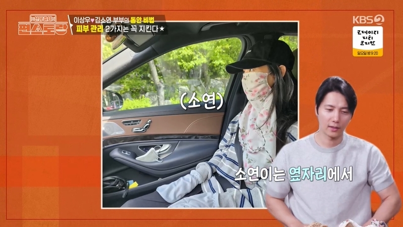 KBS2TV‘신상출시편스토랑’캡처KBS2TV‘신상출시편스토랑’캡처[뉴스엔김명미기자]이상우가김소연의동안피부비결을공개했다.8월1일방송된KBS2TV'신상출시편스토랑'(이하편스토랑)에서는정성광인이상우의저속노화를위한일상이공개됐다.이날이상우는아내김소연의꿀피부비법이'햇빛가리개'라고밝혔다.이상우는"소연이는항상옆자리에서해를거의안본다.햇빛을최소한으로줄인다"고말했다.이어"어차피저희가야외촬영할때햇빛을자주보니까"라며"운전할때소연이맨얼굴을본적이없다.항상(햇빛가리개를)뒤집어쓴다.비오는날에도탄다고쓰고있다"고밝혔다.또이상우는"집에서커튼도해가뜨면닫는다.해가없어져야커튼을연다"고덧붙였고,이연복은"저렇게해야피부를유지하는구나"라며감탄했다.뉴스엔김명미mms2@기사제보및보도자료[email protected]ⓒ뉴스엔.무단전재&재배포금지Copyright©뉴스엔.무단전재및재배포금지.