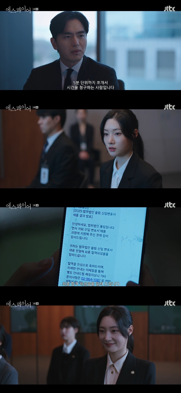 티브이데일리포토[티브이데일리김진석기자]'에스콰이어'정채연과이진욱의심상치않은첫만남이그려졌다.2일첫방송된JTBC토일드라마'에스콰이어:변호사를꿈꾸는변호사들'(극본박미현·연출김재홍,이하'에스콰이어')에서는딱딱한송무팀장윤석훈(이진욱)도당황케한신입강효민(정채연)의회사생활이방송됐다.이날강효민은회사면접자리에늦었다.그런그에게윤석훈은"나가라.변호사는해당업무를위해5분단위로쪼개서시간을청구하는사람이다.그런직업을가진사람이시간개념없으면안된다.나가라"라고일갈했다.고승철(김의성)은마지막면접조에한명이빈다며자리를벗어났던강효민에게기회를주자고제안했고,윤석훈은이에응했다.강효민은서울대로스쿨을졸업했으며,모의법정대회에서훌륭한성적을거둔인재였다.그는면접조에들어와다른지원자들과비교해일반상식과법적논리를구분하는월등한능력을뽐냈다.강효민은여러지원자들사이에서두각을드러내자윤석훈은그런그를눈여겨봤고,결국강효민은율림변호사가됐다.율림의신입변호사인덕션에참가해여러팀이자신의팀들을소개했다.워라밸부터성과급을설명하는자리에서송무팀장윤석훈은"워라밸을챙길시간없다.주어진일만잘하면칼퇴가능하지만,삽질할시간필요하다.1년차가뭘할줄아냐.처음엔다들똥오줌못가리지"라고"시간개념없는사람은지원하지마라"라고솔직하게말했다.강효민은모든팀이자신을원하고있음에도송무팀을향했다.윤석훈은그를보며한숨을뱉었고,이진우(이학주)는윤석훈이강효민을거절하자,그의시간개념과복장상태와준비성을언급하며그를거절한이유를말했다.윤석훈은"의뢰인이피해보면안된다"는입장을고수했다.이진우는강효민을윤석훈에게데려와팀에데려오고싶다는의견을밝혔다.강효민은"사랑에서상처를입으면소송을생각한다.저는그런사람을대변하는일을하고싶다.재밌으니까"라고전했다.새로송무팀에들어온신입들에게윤석훈은"잘썼지만,오타세개는성의의문제다"라며일갈했고,다른문제들에대해서도신입들이마음에들지않는다는반응을보였다.다만강효민이쓴초안에대해서는"잘썼다"라는칭찬을남겼다.윤석훈은"일머리가없으면엉덩이라도무겁게앉아아웃풋을내라.'죄송합니다'라는말은내가제일싫어하는무책임한말이다"라고신입들을쏘아붙였다.그는"변호사시험통과하면다변호사냐.신입들을내가왜변호사라안부르는줄아냐.법인기여도측면에서다른사원보다나은게있냐.'에스콰이어'변호사를의미하는존칭이다.그렇게불리고싶다면,걸맞게행동하라"라고조언했다.다시회사에지각한강효민은윤석훈의부름을받고그의방으로들어갔다.머리도말리지않은그의모습에윤석훈은"이틀연속무단결근에머리도못말리고출근한신입에할말없다"라고말했다.윤석훈은그에게"징계절차를밟으라"라고말했고,강효민은"외근을다녀온것이다.강동도시가스주총을다녀왔다"라고변명했다.윤석훈은"제멋대로네"라고말했고,강효민은"우리모두변호사아니냐.판결전기회를줘야하는거아니냐"라며"조사가필요해서외근중이었다"라고전했다.윤석훈은황당했고,이진우는당황했다.강효민은"30년넘게온천이뜨겁게운영됐는데,7년전부터매출이떨어진게말이안된다.사용열량이조작된것같다"라고밝혔다.윤석훈은강효민의조사에만족했고,다신이러지말라는조언을더했다.이사건으로법정에선강효민은고려사항들을목욕탕에대입해피해액13억원이라는피해금액을확인했고"실제절취액은더클것으로예상된다"라고밝혔고,윤석훈은만족한듯끄덕였다.집으로돌아온윤석훈은세상을떠난반려견과전아내에대해회상하며씁쓸한미소를전했다.[티브이데일리김진석기자[email protected]/사진=JTBC'에스콰이어']에스콰이어[Copyrightⓒ*세계속에新한류를*연예전문온라인미디어티브이데일리(www.tvdaily.co.kr)/무단전재및재배포금지]Copyright©티브이데일리.무단전재및재배포금지.
