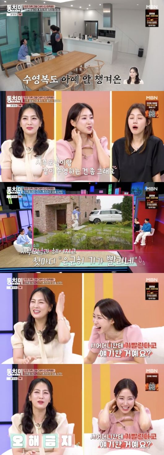 [OSEN=임혜영기자]정미녀가시부모님과의여행에"기빨린다"라고표현해눈길을끌었다.2일방송된MBN'속풀이쇼동치미’에서는전민기,정미녀가전민기의부모님과함께가족여행을떠나는모습이공개되었다.정미녀,전민기부부는시아버지칠순맞이가족여행을떠났다.전민기는“올해가결혼10주년이고아버지칠순이겹쳤다.가족여행을제가계획했다.여행스타일이너무다르다.가족여행에서도혼자만의시간이꼭필요한사람이다.이런아내랑사는게괜찮은건지”라며고민을드러냈다.숙소에도착한가족.케이크파티를마친이들은물놀이를시작했다.전민기는가족여행이니함께수영을하자고제안했지만정미녀는수영복도챙기지않았다고말했다.정미녀는원래물을싫어한다고말했고가족들이수영하는사이정미녀는“은근히기빨리네”라며외출에나섰다.이에최희는“시어머니한테기빨린다고한것이냐”라며놀란반응을보였다.가족여행에서혼자만의시간을즐기려는정미녀는“가보자!혼자만의시간”이라며홀로드라이브를즐겼다./[email protected][사진]MBN'속풀이쇼동치미'Copyright©OSEN.무단전재및재배포금지.