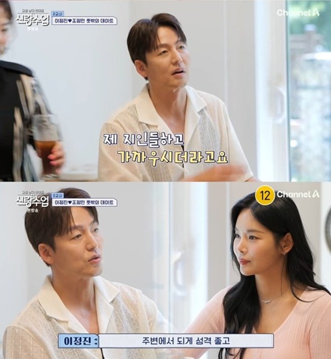 티브이데일리포토[티브이데일리이기은기자]배우이정진,트로트가수조정민,썸이시작될까.6일방송된채널A예능프로그램'요즘남자라이프-신랑수업(이하'신랑수업')'에서이정진의두근거리는소개팅현장이공개됐다.이다해,심진화는이정진이아픈손가락이라며"처음엔여기입학하지않아도될사람이라고생각했는데,여자로서보니까아쉬운점이느껴졌다"고말했다.이다해는이정진연애세포가죽었다고지적했고,예쁜지인들을소개시켜주겠다고말했다.이다해가소개해준여성은조정민이었다.이정진은무덤덤한태도인듯,서서히미소가번지면서"개인적으로본적은없는데,제주변지인들하고많이가까우시다.주변에서되게성격좋고운동열심히한다고많이들었다"라고인사를건넸다.이다해는조정민이남편세븐이뮤지컬을하던시절여자주인공이었다며아는동생인조정민의인품을칭찬했다.조정민의이상형은"대화가잘통하고섬세했으면좋겠고,감성,운동쪽으로잘맞으면좋다"고말했다.돈이나명예보다사람이중요하다는뜻이었다.[티브이데일리이기은기자[email protected]][Copyrightⓒ*세계속에新한류를*연예전문온라인미디어티브이데일리(www.tvdaily.co.kr)/무단전재및재배포금지]Copyright©티브이데일리.무단전재및재배포금지.