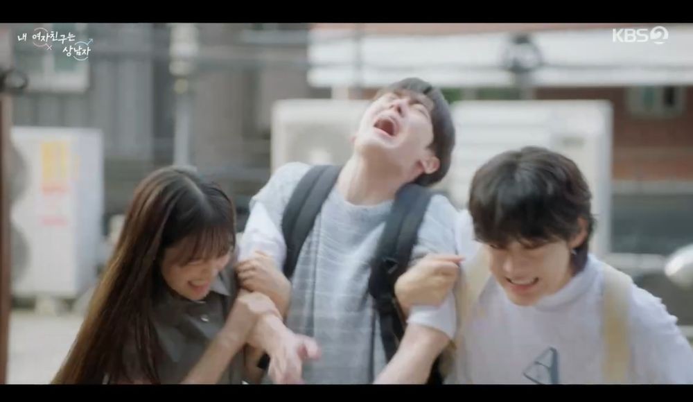 [TV리포트=남금주기자]츄,유정후가윤산하를두고신경전을펼친가운데,윤산하가유정후에게뽀뽀하고싶다고밝혔다.6일방송된KBS2수목드라마'내여자친구는상남자'에는박윤재(윤산하분)가김지훈(유정후)을신경쓰는모습이그려졌다.이날강민주(츄)는응급실에서박윤재부모님김은숙(조은숙),박일조(김광식)에게"밥은후배가아닌여자친구로얻어먹으러가겠다"라고밝혔다.부모님이"사귀는사람이따로있단얘기냐"라고하자강민주는"부모님도모를정도면그렇게깊은사이는아니겠죠"라며별사이가아니라고말했다.이를듣던김지훈은"서로죽고못사는깊은사이다.내가박윤재여자친구니까"라고외쳤다.하지만아무도믿지않았고,김지훈은"유머였다"라고너스레를떨었다.박윤재가족과강민주가같이있는모습을본김지훈은소외감을느끼며밖으로나왔다.하지만뒤따라나온박윤재가김지훈에게기댔다.두사람의모습을본강민주는김지훈에겐가라고말한후박윤재를데리고들어갔다.이후학교에서박윤재를만난강민주는마라탕을사달라고했다.강민주는"오빠랑김지훈오빠무슨사이냐.오빠를대하는게그냥친구같진않아서"라고의심했다.박윤재는"지훈이가원래좀착해"라고둘러댔고,강민주는"응급실까지쫓아오다니.멋진의리네"라고밝혔다.강민주는자신과비슷하단말에"나랑똑같으면곤란하지.난오빠를좋아하잖아"라고틈새고백을하기도.강민주는"그오빠가응급실에서이상한말하더라.자기가오빠여자친구래"라고했고,당황한박윤재는먹던커피를뿜었다.박윤재가강민주옷을닦아주던걸본김지훈은화가나서박윤재의이름을불렀다.김지훈은강민주가학교를물어보자"노코멘트"라고답했다.이에강민주가"볼때마다사사건건투명하지못한느낌이든다"라고하자김지훈은발끈했다.두사람은박윤재를사이에두고끝없는신경전을펼쳤다.양쪽에서팔짱을꼈고,옆자리를사수하기위해몸싸움을벌였다.결국박윤재는다른자리로옮겼고두사람은옆에앉아매운맛신경전까지펼쳤다.김지훈과둘만남게된박윤재는매워서어쩔줄모르는김지훈을보며김지은(아린)의얼굴을떠올렸다.급기야박윤재는"뽀뽀하고싶다"라고말했다.김지훈이"뭐라고했어?"라고되묻자박윤재는모른척했다.그런가운데김지훈은곤경에처한최유리(박주원)앞에나타나남자친구인척했다.미나언니(예원)는"작가생활걸고말하는데쟤최유리남친아니야"라고확신했다.최유리는김지훈에게"내가너한테반해서고백이라도하면어쩌려고?내가너한테다른마음생길까봐얼마나조심하는지모르지?"라고화를냈다.남금주기자[email protected]/사진=KBS2'내여자친구는상남자'Copyright©TV리포트.무단전재및재배포금지