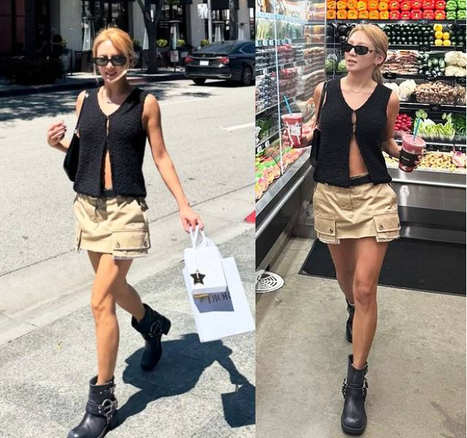 ‘소녀시대’효연이LA한복판을런웨이로만든듯한여름룩으로현지분위기를휘어잡았다.효연은6일자신의SNS를통해공개한사진에서블랙민소매크롭조끼에베이지미니스커트를매치한감각적인여름패션으로시선을강탈했다.여기에버클디테일의블랙워커부츠를더해시크함과하이틴무드를병치하며스타일의정점을찍었다.효연이LA한복판을런웨이로만든듯한여름룩으로현지분위기를휘어잡았다.사진=효연SNS특히볼드한블랙선글라스와심플한미니숄더백,쇼핑백까지완벽한스타일링으로,LA의햇살아래에서도패션아이콘의존재감을증명했다.한손에는싱그러운핑크음료를든채,마치한편의화보처럼LA마켓을누비는모습은효연특유의여유로운아우라와센스를드러내며팬들의감탄을자아냈다.한편효연은유튜브채널‘효연의레벨업’을통해팬들과소통중이며,최근SBS‘유니버스티켓’과tvN‘장사천재백사장2’에출연해다양한매력을선보였다.[김승혜MK스포츠기자][ⓒMK스포츠,무단전재및재배포금지]Copyright©MK스포츠.무단전재및재배포금지.