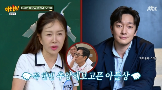 [스타뉴스|김정주기자]/사진=JTBC예능프로그램'아는형님'방송화면배우박준금이손석구에대한팬심을드러냈다.9일방송된JTBC예능프로그램'아는형님'에는수많은드라마에서시어머니역할을맡았던배우서권순,박준금,문희경,오민애가출연해거침없는입담을선보였다.이날박준금은'중년제니'라는별명에대해"제니처럼작고몸매가좋다고해서60대제니가됐다"라고설명해시선을모았다.그는동안비결에대해"나는60이후로는나이를안세기시작했다"며"배우에게가장중요한덕목은용모관리라고생각한다"고소신을밝혔다.이어"우리는한세기를시청자와함께늙어간다.그들을슬프게하지않으려면열심히가꿔야한다.나는피부과에한달에한번씩간다.요즘피부를젊게해주는부스터가많아서꾸준히관리받고있다.의사선생님이'관리가노화를따라잡았다'고하셨다"라고자부심을드러냈다./사진=JTBC예능프로그램'아는형님'방송화면이를듣던이상민은"이미모면아직도대시가들어오지않느냐"고물었고,박준금은"당연하다"라고고개를끄덕여놀라움을자아냈다.박준금은또"극중아들들과아직도연락하느냐"는질문에"그렇다.난잘난아들들이너무많다"며배우주지훈과임시완을꼽았다.그는"그당시떴던남자배우들의엄마역할은한번씩다해본것같다"며"나는드라마에서엄마로나왔다고해서엄마라고부르는게싫다.그냥선배님이라고불렀으면좋겠다.다만윤종훈이라는배우는엄마라고하는게좋다.너무스윗하다"라고미소지었다.그런가하면박준금은다음작품에서아들로만나고싶은배우로손석구를꼽아시선을모았다.그는"드라마'천국보다아름다운'에서김혜자선생님이그연세에손석구씨와연애하는데너무부러웠다.내생애한번만해보고싶다.너무매력있다"라고고백했다.이에문희경은"아들이아니라연애를해야지"라고너스레를떨어스튜디오를발칵뒤집어놨다.김정주기자[email protected]©스타뉴스&starnewskorea.com,무단전재및재배포금지