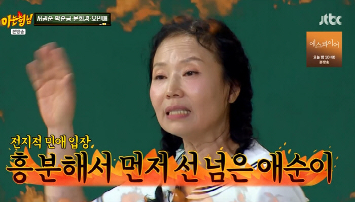 [스포츠조선닷컴이우주기자]'아는형님'오민애가극중아이유의뺨을때린장면에대해해명했다.9일방송된JTBC예능프로그램'아는형님'에서는배우서권순,박준금,문희경,오민애가출연했다.네사람은'국민시어머니'로열연한명품배우.멤버들은누가더센시어머니인지의견을나눴고강호동은"민애가세다.애순이뺨때렸잖아"라고폭로했다.넷플릭스'폭싹속았수다'에서아이유의시어머니로출연한오민애가극중화가나서제사상을엎은아이유의뺨을살벌하게때렸기때문.이에오민애는"나억울하다"며"제사를치르는데집안가장어른이제사상을치우고있는데애기며느리가와서그상을엎는다.그러면눈이돌아가겠냐.안돌아가겠냐.돌아가겠지"라고열변을토했다.하지만서장훈은"살짝엎을만하더라"라고아이유편을들었고오민애는"그건애순이입장이지만내입장이있잖아.거기다나보고아가씨나잠녀시키라하지않았냐.심지어흥분해서.진정시키려고따귀를때린것뿐"이라해명했다.문희경은"근데뺨때리는것도노하우가있다.어떤배우들은직접때려달라부탁한다"고말했고서장훈은"민애는제대로때린거지?"라고물었다.이에오민애는"애순이가부탁했다"고말해웃음을안겼다[email protected]©스포츠조선.무단전재및재배포금지.