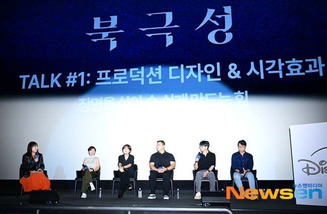 왼쪽부터백은하소장,정서경작가,김희원감독,허명행감독,김병한미술감독,홍정호VFX슈퍼바이저[뉴스엔글박수인기자/사진표명중기자]'북극성'팀이극중등장하는대성당을실제로구현했다.김희원감독은8월20일서울용산구CGV용산아이파크몰에서진행된디즈니+오리지널시리즈'북극성'(극본정서경/연출김희원허명행)크리에이터스토크에서대성당시퀀스에대해"일단이신을찍을수있는성당이없기때문에어떻게만들어야하느냐를가장많이얘기했다.주인공이처음만나는장면이다.거기서안겨주는아스라한멜로도있고어마어마한장면도있기때문에사실성도있어야했기때문에새로디자인했다"고운을뗐다.김병한미술감독은"공간을디자인할때는여건이되는곳을찾을수없어서세트로만들기로결정했다.제작진과디즈니+모두아낌없이지원해주셨지만한도끝도없이예산을쏟아부을수는없지않나.그래서고민을많이했다.세트디자인을할때부터어디부터CG로할지슈퍼바이저님과논의했다.후반에는CG로잘채워주셨던것같다"고말했다.정서경작가는"(세트로지은)성당을보게됐는데놀라움과당혹을넘어서서공포를느꼈다.한두신인데이렇게큰성당을이렇게아름답게지을수있었을까싶었다.누가이렇게하도록했냐고물어봤더니감독님께서'작가님이이렇게쓰신거아니에요?'하시더라.큰대성당이었는데하늘에서뭔가내려오는걸느꼈다.그대성당을보고엔딩신을썼다.결말을알지못하고있었는데그곳에서엔딩이이뤄져야할것같았다"고설명했다.한편'북극성'은유엔대사로서국제적명성을쌓아온‘문주’(전지현)가대통령후보피격사건의배후를쫓는가운데,그녀를지켜야만하는국적불명의특수요원‘산호’(강동원)와함께한반도를위협하는거대한진실을마주하는이야기.오는9월10일3개,17일부터매주2개의에피소드를공개한다.뉴스엔박수인abc159@/표명중acepyo@기사제보및보도자료[email protected]ⓒ뉴스엔.무단전재&재배포금지Copyright©뉴스엔.무단전재및재배포금지.