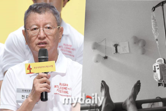 최근전유성의페이스북에업로드된병상사진/소셜미디어[마이데일리=이승길기자]'개그계의거장'으로불리는전유성(76)이건강상의이유로참석예정이던일정에불참한다.전유성은오는9월6일부산해운대구동서대에서열리는부산국제코미디페스티벌부대행사'코미디북콘서트'에불참한다.당초이행사에는전유성과이홍렬,정선희가출연해작가로변신한개그맨들에대한이야기를나누기로했지만,출연진명단에서전유성의이름이제외됐다.전유성은최근건강이악화하면서불참을결정한것으로알려졌다.전유성은부산국제코미디페스티벌명예위원장을맡고있기도하다.전유성은1969년방송작가로데뷔한이후'유머1번지','쇼비디오자키'등수많은코미디프로그램에서활약하며한국개그계의발전을이끈인물이다.2001년에는‘전유성의코미디시장’을창단해개그지망생을양성하는데앞장서며후진양성에도헌신해왔다.앞서전유성은유튜브채널‘김영철오리지널’에출연해코로나19후유증으로인해힘든시간을보내고있다고털어놓은바있다.당시그는“음식이입에들어가면전부다신맛이나서먹기가힘들다.그래서잘안먹는다”고말했다.Copyright©마이데일리.무단전재및재배포금지.