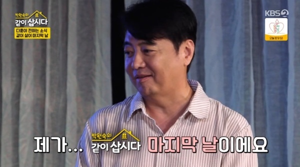 '박원숙의같이삽시다'25일방송KBS2TV'박원숙의같이삽시다'캡처(서울=뉴스1)박하나기자=배우윤다훈이'박원숙의같이삽시다'에이별소식을전했다.25일오후에방송된KBS2TV예능프로그램'박원숙의같이삽시다'에서는데뷔50주년을맞은혜은이의콘서트와윤다훈의마지막인사가담겼다.이날'같이삽시다'식구들이혜은이의50주년콘서트에총출동한가운데,공연이끝난뒤윤다훈이"오늘마지막촬영이에요"라고고백해모두를놀라게했다.윤다훈은"작품들어가면바빠질것같다고말씀드렸잖아"라며조심스럽게이별을전했고,박원숙,혜은이,홍진희는서운함을감추지못했다.윤다훈이의미있는마지막식사를위해'이모카세1호'김미령셰프의한식주점을예약했다.김미령셰프는윤다훈의부탁으로코스요리부터개인별맞춤요리까지준비해모두를감동하게했다.같이살이내내진심을보여준윤다훈은섭섭해하는누나들을위해꽃과편지를선물했다.박원숙,혜은이,홍진희는윤다훈의진심이담긴편지를읽고오열하는모습으로눈길을끌었다.한편,KBS2TV'박원숙의같이삽시다'는화려했던전성기를지나인생의후반전을준비중인혼자사는중년스타들의동거생활을담은프로그램으로매주월요일오후8시30분에방송된다.KBS2TV'박원숙의같이삽시다'캡처[email protected]©뉴스1.Allrightsreserved.무단전재및재배포,AI학습이용금지.