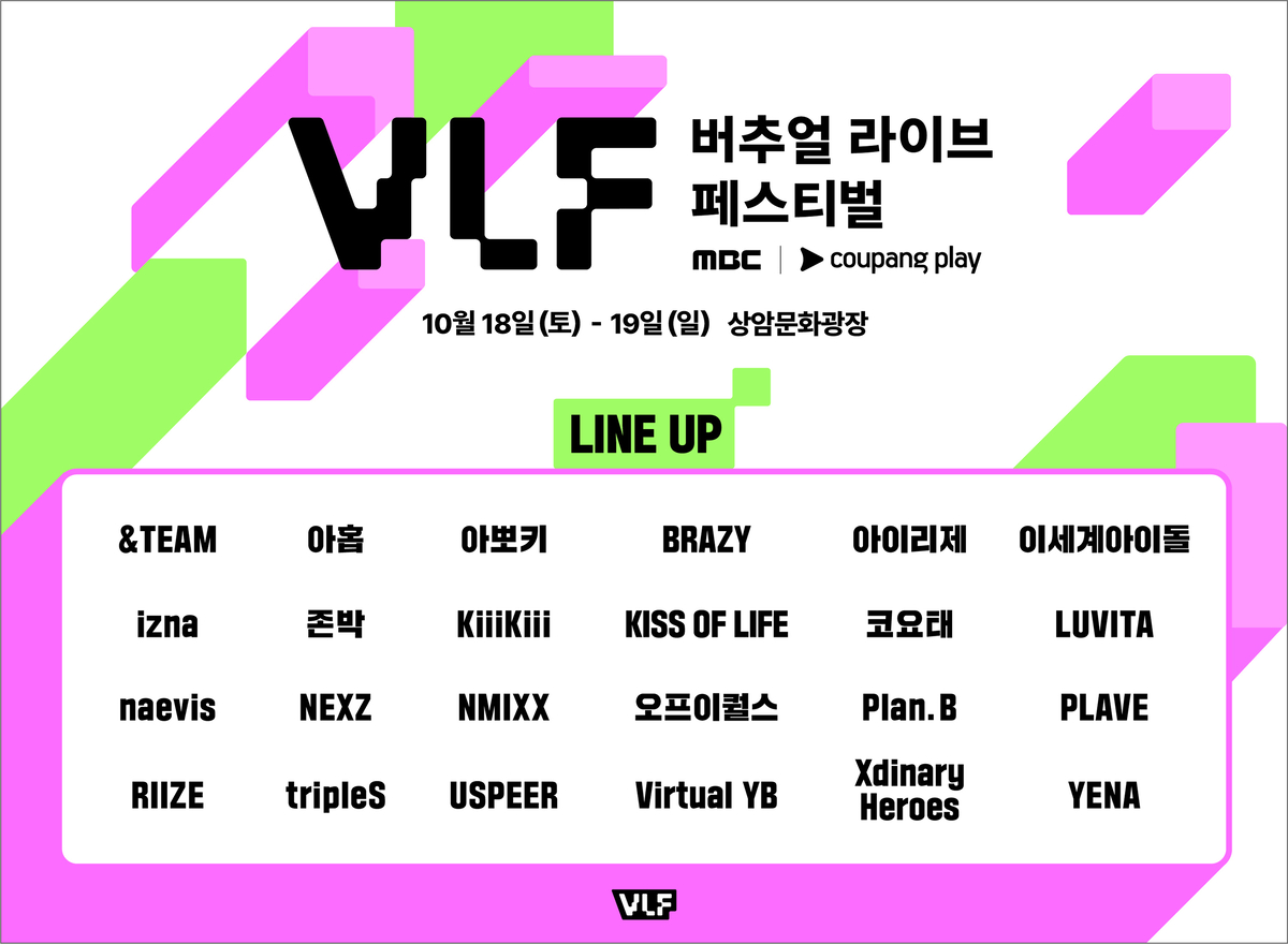 ‘MBC버추얼라이브페스티벌with쿠팡플레이’라인업오는10월18일과19일,서울DMC상암문화광장에서열리는글로벌음악축제‘MBC버추얼라이브페스티벌with쿠팡플레이’가초호화아티스트라인업을전격공개했다.첫발표후,K-POP아티스트와버추얼아이돌이장르와세계관을넘나드는파격적인콜라보무대를선보이는이례적인구성으로큰주목을받은‘MBC버추얼라이브페스티벌with쿠팡플레이’.이번페스티벌에는PLAVE(플레이브),이세계아이돌(ISEGYEIDOL),RIIZE,NMIXX등20팀이넘는최정상아티스트들이참여를확정하며팬들의기대감을한껏끌어올리고있다.아티스트라인업에는폭발적인인기를끌고있는K-버추얼아이돌대표주자PLAVE(플레이브)와이세계아이돌(ISEGYEIDOL)이이름을올렸다.여기에아뽀키,BRAZY,아이리제(IRISÉ),LUVITA,nævis(나이비스),오프이퀄스,Plan.B까지합류하며,국내외팬들의관심을한몸에받고있는버추얼아티스트들이총출동한다.RIIZE,NMIXX,YENA(최예나),KISSOFLIFE,tripleS,XdinaryHeroes,izna,NEXZ를비롯해KiiiKiii,USPEER(유스피어),&TEAM,아홉(AHOF)등글로벌무대에서활약중인K-POP최정상아티스트들과주목받는라이징아이돌그룹들이대거참여해무대를더욱화려하게수놓는다.버추얼프로젝트를통해새로운도전에나선록밴드YB의‘VirtualYB’,감성보컬리스트존박,국민혼성그룹코요태등레전드아티스트들도합류해세대를아우르는초호화라인업을완성했다.‘MBC버추얼라이브페스티벌with쿠팡플레이’는쿠팡플레이를통해생중계된다.현장관람및온라인스트리밍티켓예매관련정보는쿠팡플레이에서공개될예정이다.손봉석기자[email protected]©스포츠경향.무단전재및재배포금지.