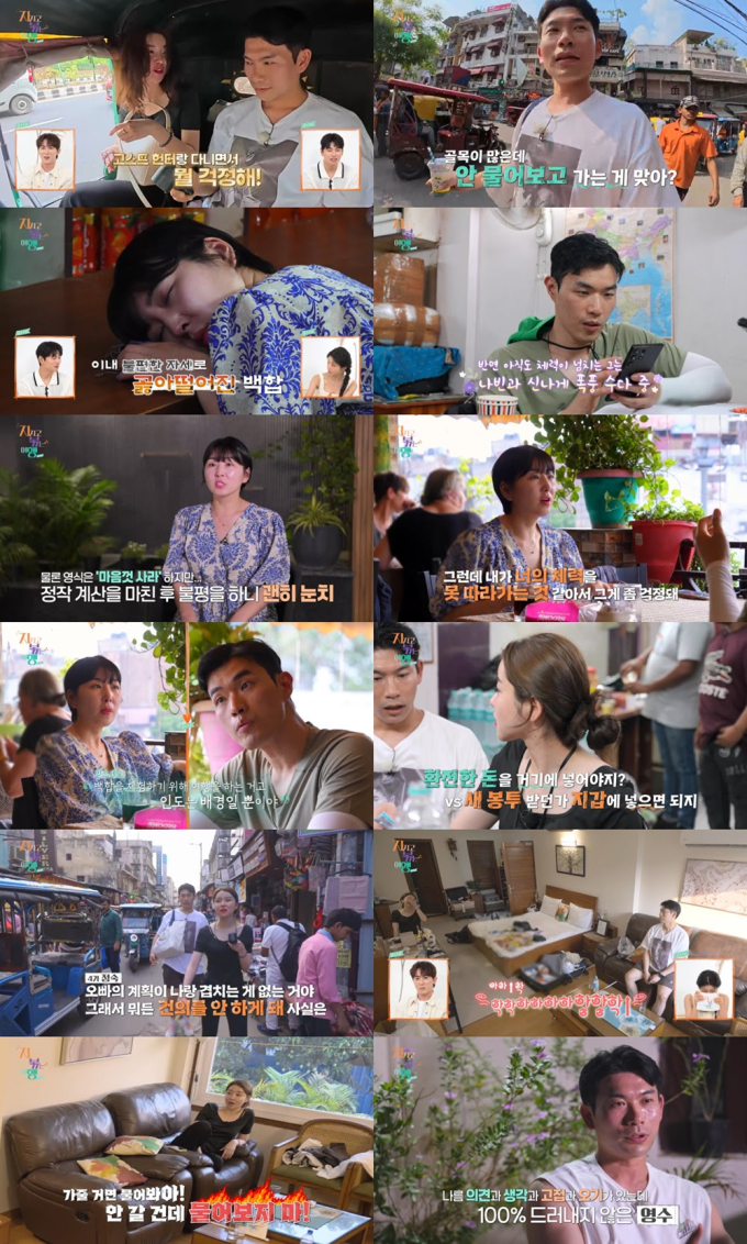‘지볶행’따로여행결심(사진:SBSPlus,ENA)‘나는SOLO(나는솔로)’4기영수-정숙과10기영식,‘나는SOLO,그후사랑은계속된다’(이하‘나솔사계’)백합이‘인내의인도’를체험했다.29일(금)방송한SBSPlus와ENA의‘지지고볶는여행’(이하‘지볶행’,제작:촌장엔터테인먼트)에서는인도여행이틀째서로의차이에대해본격적으로깨달은4기영수-정숙,10기영식-백합의모습이그려졌다.4기영수-정숙은‘가난작전’으로요금을협상한끝에툭툭이(오토릭샤)를타고‘델리의얼굴’파하르간지로향했다.4기영수는아슬아슬하게달리는툭툭이안에서“사고날것같아”라며불안해했고,4기정숙은“고스트헌터랑다니면서뭘걱정하냐”고쿨하게무시했다.4기영수는“공황이올거같다”며다시괴로워했고,4기정숙은“난오빠와의대화가더공황”이라면서“이게내유일한힐링,유일한일탈!”이라고툭툭이사랑을외쳤다.잠시후,툭툭이에서내린4기정숙은환전을위해한국인전문여행사로향했다.그런데4기정숙은지도도보지않은채,체감온도40도인무더위속에서여기저기를헤매다가제자리로돌아왔다.4기영수는“안물어보고가는게맞아?”라고지적했는데,4기정숙은“아니면다시가는거지~”라고태연하게답해4기영수를당황케했다.비슷한시각,10기영식은현지인들에게물어빠르게한국인전문여행사를찾았다.10기영식은환전을마친뒤,타지마할이있는아그라행기차티켓도예매했다.하지만그는여행사직원과폭풍수다를떨었고,더위와피로에지친백합은“너무졸리다”며테이블에앉은채로곯아떨어졌다.무려2시간의수다끝에여행사에서나온10기영식과백합은오후3시30분이돼서야이날의첫끼를먹으러갔다.식당에서백합은가격에민감한영식의눈치를보며메뉴를주문했다.그러면서그는“내가너의체력을못따라가는거같다”고미안해했다.10기영식은“백합을체험하기위해이여행을하는거고인도는배경일뿐~”이라며스윗하게화답했다.핑크빛기류속식사를마친백합은“툭툭이로드라이브할수있는데를돌아달라고하고집에가서씻고시원한맥주먹는거어때?”라고제안했다.10기영식은“판타스틱”이라며‘엄지척’을했다.한편,4기영수-정숙은10기영식-백합을도와준현지인을만나가까스로여행사를찾는데성공했다.4기정숙은환전을한뒤,곧장돈봉투를찢었다.이때4기영수는“그걸왜찢어?”라고물었고,4기정숙은“봉투찢는것가지고도혼나야하냐?”며짜증을냈다.싸늘한공기속,두사람은아그라행열차를예매하려다가‘차대절패키지투어’를발견해차량투어를하기로계획을변경했다.여행사를나온4기영수는“우리저녁식사는어떡할래?”라고물었다.잠깐침묵하던4기정숙은“난(쇼핑)몰을가고싶은데오빠의계획이나랑겹치는게없어.그래서뭐든건의를안하게돼”라고푸념했다.4기영수는“뭐하자는거야?”라며발끈했고,4기정숙은한숨을푹푹쉬다가“근처에있는쇼핑몰을가자”고했는데4기영수는“45분이걸리니까그냥집으로가자”고말했다.4기정숙은“그러면툭툭이를한번더타는거어떠냐?내유일한스트레스창구다”라고부탁했다.하지만4기영수는툭툭이기사와요금협상에실패했고,결국두사람은택시를탔다.에어컨도안전벨트도,심지어사이드미러도없는택시안에서4기영수는“난더위를먹은것같아”라고중얼거렸다.반면,4기정숙은“듣던중희소식이네.이제야템포가맞아서반갑네~”라며즐거워했다.4기영수가“너좀아까부터이상하다”고눈을흘기자,4기정숙은“인도귀신이왔다갔나보지”라며깔깔웃었다.숙소에돌아와서도4기정숙은‘신들린웃음’을멈추지않았다.4기정숙은4기영수가힘들어서비타민까지찾자,“나올해들어서제일기쁜거같아”라며뒤로넘어갔다.4기영수는‘그라데이션분노’하면서도다시참으면서“이따가쇼핑몰갈까?”라고4기정숙이원했던여행코스를제안했다.하지만4기정숙은“아까내가대형쇼핑몰가자고했는데오빠가숙소로가자고해서(그계획을)버린거다”라고화를냈다.4기영수는“거기가어딘지다시얘기해봐”라고했지만,4기정숙은“안갈거면물어보지마.말해봤자듣지도않는걸왜말하냐?자기일정은당연한거고내꺼는변동할수있는거고?”라며분노했다.이미자신의의견을몇차례무시한4기영수에게토라진4기정숙의모습에4기영수는고개를절레절레흔들었다.이후그는제작진앞에서“여자와여행온게처음인데,여자와함께여서힘든게아니라,정숙이랑와서어려운것같다.인도의인자가참을인(忍)인지모르겠지만이렇게참아본게얼마만인지모르겠다”고털어놨다.직후공개된예고편에서는10기영식과백합이10기영식의일방적인주도로빡빡한여행일정을강행하는가하면,여행에돈을아끼지않는백합과달리10기영식이‘짠돌이’행보를이어가둘사이의균열을예감케했다.또한둘째날에도4기정숙과언쟁을한4기영수가혼자나가서밥을먹고,급기야두사람이“아예인생을분리하자”며‘따로여행’을결심한듯해다음방송에대한궁금증을높였다.4기영수-4기정숙과10기영식-백합의아찔한인도여행기는9월5일(금)밤8시40분SBSPlus와ENA에서방송하는‘지지고볶는여행’에서계속된다.박지혜기자[email protected]뉴스연예팀기사제보[email protected]©bnt뉴스.무단전재,재배포및AI데이터활용금