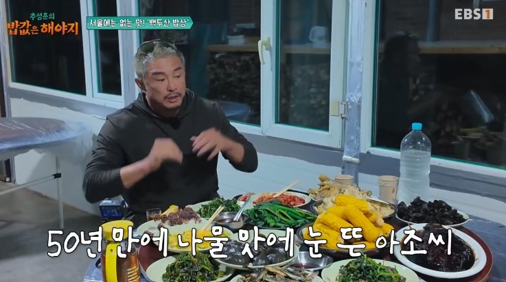 EBS,ENA공동제작‘추성훈의밥값은해야지’EBS,ENA공동제작‘추성훈의밥값은해야지’[뉴스엔이슬기기자]추성훈이나물맛에푹빠졌다.8월30일방송된EBS,ENA공동제작‘추성훈의밥값은해야지’에서는연변여행을이어가는추성훈이그려졌다.이날추성훈은백두산천지물이흘러나오는약수와,맛있는음식으로도유명한약수촌을찾았다.그는늦은식당에열려있는식당하나를찾아들어섰다.조선족노부부가30년넘게운영중인백두산심마니들의맛집으로,메뉴는'백두산밥상'단일메뉴였다.주문후추성훈은상을가득채운음식들에감탄했다.특히평소고기만먹는육식파추성훈은고기뿐만아니라나물에도푹빠져눈길을끌었다.그는"이거는서울에서절대못먹는맛이다"라고하면서나물양념비법을물어보기도했다.사장님은"간장이맛있어야한다.한국은참기름넣는데우리는달군콩기름을넣는다"라고했다.이후추성훈은백두산나물로만든만두에도감탄하면서"고기가안들어간게맞냐"라고물어웃음을더했다.한편‘추성훈의밥값은해야지’는추성훈이세계극한직업에도전하고땀흘려번밥값만큼즐기는현지밀착리얼생존여행기를담는다.뉴스엔이슬기reeskk@기사제보및보도자료[email protected]ⓒ뉴스엔.무단전재&재배포금지Copyright©뉴스엔.무단전재및재배포금지.