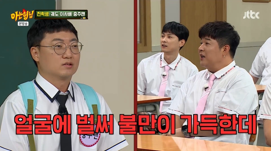 (엑스포츠뉴스이창규기자)'아는형님'충주맨이서운함을드러냈다.30일방송된JTBC'아는형님'(이하'아형')에서는크리에이터궤도,충주맨,이사배가게스트로출연했다.이날방송에서김희철은"근데충주맨은우리한테무슨불만이있는거냐"고물었고,신동도"얼굴에벌써불만이가득한데?"라고거들었다.김희철이"민원넣으려고하는표정이네"라고하자충주맨은"섭외를너무늦게해주셔서몸둘바를모르겠다.섭외가너무늦었다"고불평했다.이를들은김희철은"왜냐면이미단물다빠져가지고"라고말했고,충주맨도"사실은뼈에구멍이날정도로사골이다나와서,너무우려먹어서좀그렇다"고반응했다.한편,1987년생으로만38세인충주맨(본명김선태)은유튜브구독자88만명이상을보유한충주시뉴미디어팀팀장으로근무중이며,충주시공식유튜브채널의기획과운영을총괄하고있다.사진='아는형님'방송캡처이창규기자[email protected]©엑스포츠뉴스.무단전재및재배포금지.