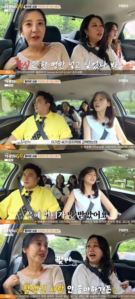 (엑스포츠뉴스우선미기자)배우박은혜가'오만추'에서이기찬을거절한이유를밝혔다.30일방송된MBN'가보자GO'시즌59회에는배우이자싱글맘인정가은이택시기사로깜짝등장해안정환,홍현희,박은혜,율희를태웠다.이날홍현희는박은혜에게"은혜언니는'오만추'너무잘봤다"라며KBS2TV연애프로그램'오래된만남추구'를언급했다.정가은은"왜저안데려가고언니만나가냐"라며'오래된만남추구'에자신을데려가지않은것에불만을드러냈다.이에박은혜는"너얘기했다.근데돌싱은한명만넣고싶었나보다.나혼자돌싱인지몰랐다.진짜누가나오는지얘기를안해주더라.갔는데너무연하였다"라며솔직하게밝혀웃음을안겼다.또홍현희는"('오만추'에서)이기찬씨가고백했는데언니가선택을안했다"라고말했고,정가은은"(은혜)언니는잘생긴사람안좋아한다"라고폭로해모두를놀라게했다.박은혜가"전얼굴을본다.그런데남들이잘생겼다는사람별로다"라며잘생긴사람이별로라고이야기했고,"기찬오빠너무잘생겼다"라는말이쏟아졌다.이를들은율희는"저도그렇다.남들이잘생겼다는사람보다내눈에잘생긴게좋다.친구들은'잘생겼다고?'그런다.개인적인취향이확고하다"라고말했다.이어홍현희는박은혜에게안정환은어떠냐고물었고,박은혜는"안정환선배는국민모두가잘생겼다고생각하지않냐.근데사귀자고하면안사귀었을것같다"라고털어놨다.이에안정환은"저도안사귄다"라고버럭해웃음을유발했다.박은혜는"너무잘생긴사람은못만날것같다"라고이야기했고,홍현희또한안정환에게"나도오빠찰것같다"라고말하자,안정환은"나는너를생각하지도않아"라고반박해폭소케했다.사진=MBN방송화면우선미기자[email protected]©엑스포츠뉴스.무단전재및재배포금지.