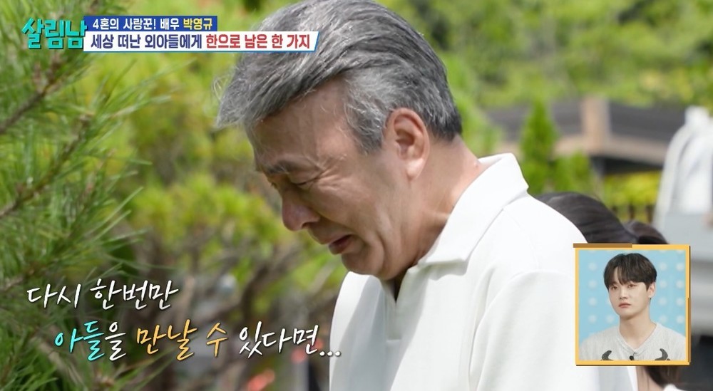 KBS2TV‘살림하는남자들시즌2’KBS2TV‘살림하는남자들시즌2’[뉴스엔이슬기기자]박영규가떠난아들에게새가족을부탁했다.8월30일방송된KBS2TV'살림하는남자들시즌2'(이하'살림남')에는행복한결혼생활을이어가는박영규가족의근황이소개됐다.이날영상에는서재에서홀로TV를보고있는박영규가담겼다.그는심각한얼굴로술한잔하는모습을보였다.이에아내는"저런모습보일때가있다"며먼저떠난아들생일이나기일을이야기했다.2004년3월13일,미국으로유학을간아들의교통사고소식이들려왔다.박영규는"그소식을들었을때쓰러져서못일어났다.살아야할이유가없었고내가죽어야만날수있으니까.죽고싶었고,죽을수있는방법만연구했다"라고했다.그러면서"아나가초등학교때우리집에왔는데6년이라는세월이흘러수능을앞두고있다.나는왜남들처럼자식졸업식도한번못가보고그랬나싶은마음이들더라"라며자식을먼저떠나보낸헤아릴수없는아버지의슬픔을이야기했다.박영규는아빠노릇을제대로하지못한후회와한속에,수험생으로서공부하는딸을보며만감이교차하는모습을보였다.박영규는아내,딸과함께박영규아들이잠든수목장으로향했다.지난해홀로수목장찾는모습을공개한바있던,박영규는"올해는셋이같이가니어떻게말로표현할수없었다.내가이제할일다했다는생각이었다"라고말했다.박영규아들은300평의큰수목장에영면해있었다.백지영은300평에달하는수목장에대해"아드님을좁은단칸방에서키우셨대요.그게너무미안해서"큰장소를마련했다고설명했다.박영규는아들에대해"맘껏놀길바란다"고했다.오빠의나무앞에도착해,딸아나는작은피규어를놓아눈길을끌었다.그는"저번에아빠가오빠랑떡볶이먹었다고했지않냐.그래서가져왔다"라며아빠와오빠가함께떡볶이를먹는모양의미니어처를준비해감동을더했다.이어박영규아내는직접만든떡볶이를꺼내기도했다.지난해박영규는홀로아들과떡볶이를먹으며시간을보낸바있다.박영규는가족의따뜻한위로에감동한얼굴로눈물을보였다.이어'살림남'제작진이준아들의가상사진을꺼냈다.그는"달아.아빠가너무보고싶은데..."라며오열해,먹먹함을안겼다.또"네예쁜동생이다.앞으로잘챙겨줘라"라며딸아나를소개해시선을잡았다.가족들은나무앞에서대화를하며시간을보냈다.아내는"지난번당신혼자왔을때떡볶이사서왔지않냐.맛은없더라도,그냥내가만들어서가져오고싶었다"라며남편과아들의추억을존중하는모습을보였다.박영규의딸은'오빠가어떤걸좋아했냐'고물었다.그러자박영규는"자동차를좋아해서대학도그쪽전공을했다.졸업전일본자동차회사입사결정이났다.자동차만들고뭐만드는걸좋아했다"며"멀리떨어져있어서많이못해줬던게늘아쉽다.고3자식을둔부모의마음을나도못느껴봤다.그런데요즘아나를보면서내가못했던것들이자꾸후회로남는다"고해먹먹함을더했다.박영규는"이제내인생의마지막은아나야.학교를지정하고싶진않다.하지만네가원하는건반드시이뤘으면좋겠다"라며딸에대한진심도잊지않았다.한편'살림하는남자들'은스타살림남들의리얼살림기를담은프로그램이다.뉴스엔이슬기reeskk@기사제보및보도자료[email protected]ⓒ뉴스엔.무단전재&재배포금지Copyright©뉴스엔.무단전재및재배포금지.
