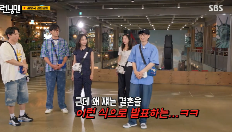 ▲사진|'런닝맨'방송화면[스포티비뉴스=배선영기자]가수김종국의깜짝결혼발표에'런닝맨'멤버들모두가충격에빠졌다.31일방송된SBS예능프로그램'런닝맨'에서는오프닝촬영전김종국이멤버들을만나결혼소식을전하는장면이등장했다.유재석역시결혼기사가뜬녹화당일사실을알게된상황.이에멤버들은잠시김종국이분장을하러간사이,당황한기류를고스란히드러냈다.지석진은"너는예전이라면독립군을해야한다.입을안여네"라며놀라워했고,하하는"다들멘트가붕떠있다.집중이안돼"라고말했다.유재석역시"공허하다.나는진짜농담인줄알았다.근데왜쟤는결혼을이런식으로발표를하냐"라며황당함을감추지못했다.▲사진|'런닝맨'방송화면최다니엘역시"저는진짜깜짝놀란것이이멤버들이오늘이사실을알았다는것"이라며놀라워했다.하하는"그러나이해한다.나한테이야기했으면난100%이야기했을것"이라고말해웃음을자아냈다.반면,여장까지불사한김종국은"이제더열심히일할것"이라며가장의무게감을드러냈다.<저작권자ⓒSPOTVNEWS.무단전재및재배포금지>Copyright©스포티비뉴스.무단전재및재배포금지.