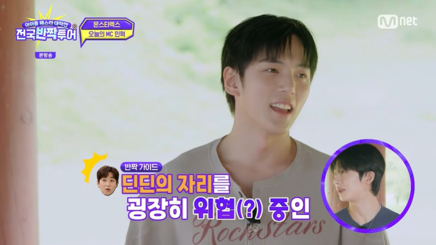 Mnet‘아이돌페스타대작전:전국반짝투어’캡처Mnet‘아이돌페스타대작전:전국반짝투어’캡처[뉴스엔장예솔기자]그룹몬스타엑스민혁이딘딘의자리를위협했다.9월2일방송된Mnet'아이돌페스타대작전:전국반짝투어'에서는몬스타엑스가충청남도공주로떠났다.이날몬스타엑스는공주출신스타김재중의러브콜을받고공산성으로향했다.원데이공주일일앰버서더답게몬스타엑스는"공주님들을만나러공주에왔다"고설렘을감추지못했다.공산성의아름다운뷰에푹빠진그때주헌은"민혁이형이오늘MC라고들었는데맞냐"고물었다.기존MC인딘딘이자리를비운가운데민혁은"MC는아니고큐카드를든사나이"라고설명했다.격하게MC라는호칭을거부하던민혁은"딘딘형의자리를위협중이다"는형원의꼬드김에결국"잘하면뺏을수있냐"고너스레떨어웃음을자아냈다.뉴스엔장예솔imyesol@기사제보및보도자료[email protected]ⓒ뉴스엔.무단전재&재배포금지Copyright©뉴스엔.무단전재및재배포금지.