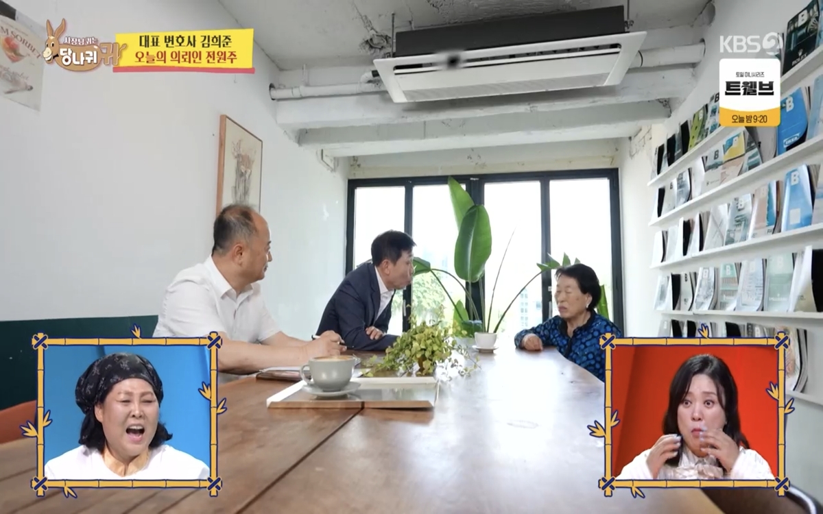 ‘사당귀’.사진lKBS전원주가5천만원을뜯겼다고밝혔다.7일오후방송된KBS2예능프로그램‘사장님귀는당나귀귀’(이하‘사당귀’)에서전원주는김희준변호사를찾았다.이날방송에서전원주는“상속세가많이나오냐”고의뢰했다.이에변호사는“상속세는30억이넘어가면50%가나온다”고답해전원주를놀라게했다.연하남에게5천만원을뜯겼다는전원주는“등산다니다가만났는데잘생겼더라고...나한테누님누님하길래생전처음으로돈을꿔줬죠”라며한숨쉬었다.변호사는“그게가장위험한거예요!이자많이준다?이런투자는다사기예요”라며경각심을일렀다.‘사당귀’는매주일요일오후4시45분KBS2에서만날수있다.[서예지스타투데이객원기자]Copyright©스타투데이.무단전재,재배포및AI학습이용금지