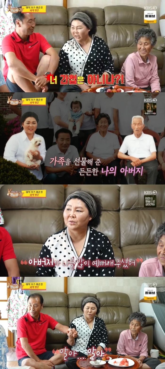 ‘사당귀’.사진lKBS이순실이직원들과시댁에방문했다.7일오후방송된KBS2예능프로그램‘사장님귀는당나귀귀’(이하‘사당귀’)에서이순실은직원들과함께시댁에방문했다.이날방송에서시어머니를본이순실은“엄마!”라며환하게웃었다.시어머니역시이순실과직원들을환영해줬다.이후시어머니는“나는순실이를딸처럼생각하고우리셋째딸로삼았으니까”라며남다른며느리사랑을보였다.그러나이순실은“엄마처음엔나안된다고했잖아!”라며과거얘기를꺼냈다.이에시어머니는“그얘기는안꺼내기로했잖아...우리는경찰집안이라.그런데안된다고하니까혼자울고있더라고”라며순실을거부했던이유를밝혔다.이에순실은“아버지가우리집에강건너,물건너왔는데오늘부터우리집에서살자고하셔서엄청나게울었어.아직도그감정이있어”라며시아버지에대한그리움을전했다.그러면서“가장충격적이었던게엄마가나한테간첩아니냐고했어”라고덧붙여시어머니를또당황하게했다.순실남편은“10년투병생활하시다가섬망증상이왔어요.아들왔다고하면못알아봤는데순실이누군지아냐고물으면‘알아...순실이’”라며순실에대한시아버지의사랑이대단했다고말했다.‘사당귀’는매주일요일오후4시45분KBS2에서만날수있다.[서예지스타투데이객원기자]Copyright©스타투데이.무단전재,재배포및AI학습이용금지