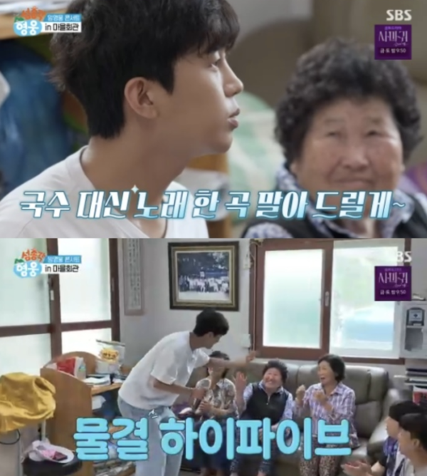[스포티비뉴스=배선영기자]가수임영웅이소모도마을회관에서깜짝미니콘서트를펼쳤다.9일방송된SBS예능프로그램'섬총각영웅'에서는전남완도소모도를찾은임영웅,궤도,임태훈의모습이그려졌다.이날아침부터세사람을찾아온마을이장님은"작은섬에서쓸수있는물이한계가있는데,비가많이안와서물이잘안나온다.섬에서는흔하다.절수하면낮에는쓸수있을것"이라고말했다.갑작스러운물부족사태에멤버들은마을을한번돌아보기로했다.이에마을회관까지들어가게된세사람.그곳에는부녀회장님을포함한마을어머니들이모여있었다.어머니들은열무비빔국수를준비중이었고이에임영웅은"저희도국수를좀얻어먹어도될까요?"라며입맛을다셨다.이에순식간에화기애애해진분위기속에나란히둘러앉아국수를나눠먹는진풍경이펼쳐졌다.그러나부녀회장님이임영웅만편애하자궤도와임태훈이서운해하는모습도그려졌다.그럼에도불구,부녀회장님은"얼굴만봐도좋아.먹는것만봐도좋아"라며임영웅을향한진한애정을드러냈다.이날임영웅은"너무잘먹었다"라며노래한곡을불렀다.마을회관노래방기계까지동원해미니콘서트가열린가운데,임영웅은'연모','고장난벽시계'등을선곡해열창했다.<저작권자ⓒSPOTVNEWS.무단전재및재배포금지>Copyright©스포티비뉴스.무단전재및재배포금지.
