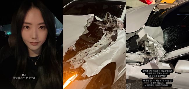 [OSEN=김나연기자]'돌싱글즈3'변혜진이교통사고를당한근황을전했다.13일밤,변혜진은자신의소셜계정에"사무실출근마트장보기브런치세차영화보기밥먹기.점점초췌해지는것같은데"라며하루일과를마친자신의셀카를공개했다.공개된셀카에는피곤한몸을이끌고운전대를잡은채밝게미소짓는변혜진의모습이담겼다.바쁜일정에시달리느라한껏지친그의심경이고스란히전해진다.하지만셀카를찍어올린지불과한시간가량지난뒤,변혜진은"더초췌해졌다..할일이많은데이제어쩌지.."라며교통사고현장을찍은사진을공개했다.해당사진속에는사고로인해반파된변해진의차량이담겼다.본네트가완전히찢겨내부가고스란히드러난모습.또다른각도에서찍은사진을보면,찢겨나간본네트의잔해가정확히운전자석이있는위치의유리에부딪힌탓에산산조각나있는상태였다.자칫하면큰부상으로이어졌을사고였지만,변혜진은"유리조각이안으로다파고들었지만와장창깨진정도는아니라큰부상은없었어요"라고가슴을쓸어내리며"내가잘한다고되는게아니라는걸또한번배웁니다.늘안전운전,방어운전하셔요"라고당부의말을전했다.한편변혜진은지난2022년방송된MBN,ENA예능'돌싱글즈3'에출연해얼굴을알렸다./[email protected][사진]변혜진SNSCopyright©OSEN.무단전재및재배포금지.