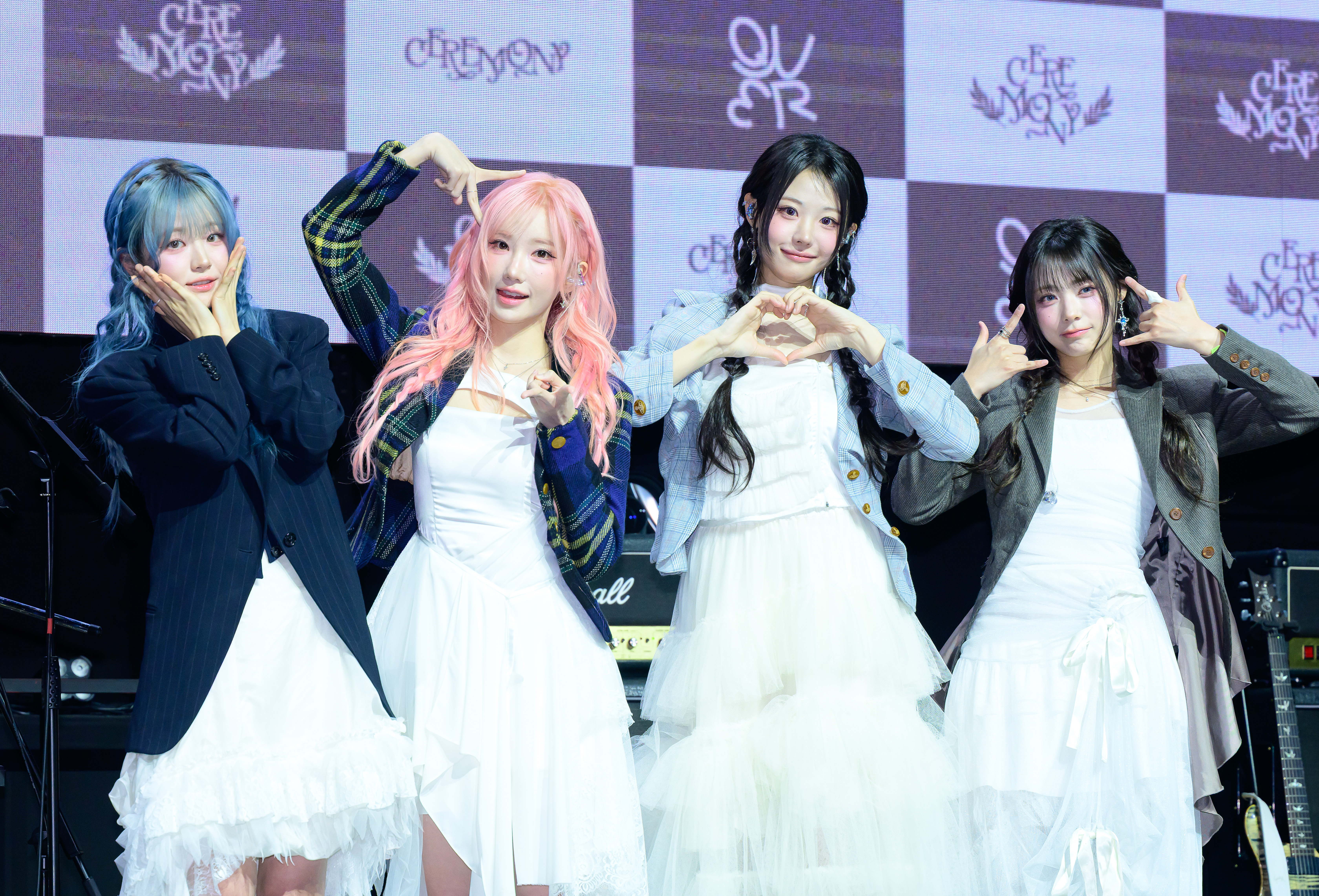 '고민중독','내이름맑음','눈물참기'까지3연타를친음원강자밴드QWER.엄청난성적을기록했는데도이들은이제야성장기가끝났다고선언했다.그리고스스로새로운시작을축하하는메시지를담은'축하노래'로돌아왔다.QWER미니4집앨범'세리머니(CEREMONY)'발매기념쇼케이스가오늘(27일)오전서울서대문구예스24원더로크홀에서진행됐다.'세리머니'는QWER이데뷔싱글부터미니3집까지이어온첫번째챕터를마무리하고,다음단계로의도약을알리는앨범이다.멤버쵸단은"이전챕터를통해서만남과성장기를그렸다면,챕터2는본격적으로우리의정체성과자아를찾는시기라고생각한다"며"챕터2의시작인만큼우리팀의음악을제대로보여드리는앨범"이라고설명했다.멤버히나가이앨범을'출사표'라고표현한만큼,더당당하게나아가겠다는각오가돋보이는앨범이다.쵸단은"우리가성장기를지나고QWER이라는게무엇인지보여드릴때가왔다고생각한다"고의지를내비쳤다.타이틀곡'세리머니'는세상의틀에서벗어나나답게살아가겠다는다짐의순간을스스로기념하고축하한다는의미를표현한곡이다.멤버마젠타는"새로운시작을할때주변에축하받기어려운경우가많은데,이노래로우리의시작도축하하고,많은분들의시작도축하드리고싶다"며"축하받는모든자리에우리의노래가울려퍼질수있도록많은사랑을받으면좋겠다"고이야기했다.이외에도타인의시선을신경쓰지않는당찬캐릭터를그려낸'배드해빗(BADHABIT)',꿈속에서라도만나고싶은대상을'바니'라는애칭으로사랑스럽게풀어낸'바니바니',불안한마음도함께라면빛나는내일이올것이라는희망을노래한'아워보야지(OurVoyage)',새로운챕터를향한자신감과다짐을개척자의모습에비유한'파이어니어(PIONEER)'등총5곡이수록됐다.QWER은챕터2의시작인이번앨범에서성장기를지난후한층성숙해진모습을보여주겠다는각오다.이에멤버전원이곡작업에참여했고,적극적으로의견을내며정체성을담고자노력했다.그중히나는"작사를잘할수있을까두려움이있었는데이번앨범에서작사에참여하면서자신감을쌓았다.그래서뜻깊은앨범"이라고말했다.멤버들은첫월드투어를마친뒤라퍼포먼스면에서도성장했다고강조했다.마젠타는"멤버들끼리호흡이더잘맞고,무대에서더활발해지고여유가생겼다"고했다.그만큼라이브무대를더많이선보이겠다며,서머소닉페스티벌참여를목표로내세웠다.그간음원차트최상위권을오랫동안유지해온그룹인만큼이번신곡의성적에도많은관심이쏠리는상황.히나는"멜론차트에서1위를한다면축하사연을받아서우리가깜짝방문을하면어떨까"라며음원차트정상탈환을향한열망을드러냈다.그러면서도멤버시연은"우리음악을사랑해주셔서감사한마음이크지만,우리는성장도하는밴드다.앞으로더여러장르를보여드리고싶기때문에성적만을좇지않고열심히하는밴드가되고싶다"고밝혔다.QWER의새앨범'세리머니'는이날저녁6시각종음원사이트를통해발매된다.[사진제공=OSEN]YTNstar오지원([email protected])*YTNstar에서는연예인및연예계종사자들과관련된제보를받습니다[email protected]로언제든연락주시기바랍니다.감사합니다.[저작권자(c)YTN무단전재,재배포및AI데이터활용금지]Copyright©YTN.무단전재및재배포금지.