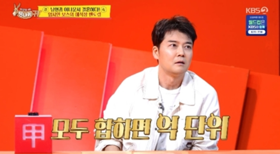 KBS2예능‘사장님귀는당나귀귀’방송인전현무가그동안낸축의금이억단위에이른다고밝혀시선을모았다.지난26일(일)방송된KBS2예능‘사장님귀는당나귀귀’(연출최승희,이하‘사당귀’)에서는오는11월결혼을발표한남현종아나운서가축가에욕심을내는엄지인,김진웅덕분에행복한(?)고민에빠져재미와웃음을선사했다.엄지인은전세사기로결혼식예산을고민하는남현종에게딱맞는대관료가무료인결혼식장과웨딩카의전서비스와화려한꽃장식이돋보이는호텔예식장등을소개해눈길을끌었다.이어남현종은청첩장을전달하는친분의범위와축의금등현실적인고민들을나눴다.엄지인이“현종이가내결혼식에안왔다”라며“내가식장도소개시켜주고했으니축의금은5만원이적당할것같다”라고하자전현무는“방송에서보여준케미가있는데10만원은해야지”라고말했고,“박명수는30만원을해야한다”라고주장했다.이에엄지인은“우리회사에서는2~30만원정도하면잘못넣은거아니냐고연락온다”라며식대를생각해20만원정도로타협했다.KBS2예능‘사장님귀는당나귀귀’그런가하면,김숙이송은이,최강희,이영자,최화정,박소현등절친에게축의금1000만원을내려고생각하고있다고밝히며한편으로는절친들이결혼을안해다행이라고너스레를떨어웃음을안겼다.이어전현무는“제일많이냈던축의금은500만원”이라며“이제까지낸축의금을다합치면억단위다”라고밝혀깜짝놀라게하더니“두번째결혼은조금깎아서낸다”라고축의금기준을밝혀웃음을빵터지게했다.엄지인과김진웅은축가에대한욕심을드러내남현종을당황케했다.즉석에서축가오디션이진행된가운데김진웅은박명수의‘바보에게바보가’를,엄지인은조혜련의‘아나까나’를열창했다.무대를지켜본남현종은“왜나에게축가선택지가두개밖에없는거냐”며“축가는제가직접하거나아예없애겠다”고선언해폭소를유발했다.한편정지선셰프는새로운식재료를찾기위해아들이우형과함께포항을찾았다.두사람은죽도시장을방문해볼락과고둥,총알오징어,개복치등다양한해산물의가격과수급상황을체크했다.시장에서아귀를본정지선이아들에게정호영셰프의트레이드마크인아귀해체쇼에대해말하자이우형군은“엄마의빠스보다약하다”고말해미소를짓게했다.최근주식투자에도관심이생겼다고밝힌우형은“지난달에용돈을29만원썼다”라고고백해정지선을놀라게했다.정지선이“초등학생이한달에30만원을쓰는건말이안된다”고지적하자우형은“29만원이다”고반박했다.사춘기에접어든아들의반항에정지선은“돈쓸시간이없도록학원을더늘리겠다”고기강을잡아폭소를유발했다.그런가하면,와우산레코드대표김윤주는요조,장들레와함께장들레의신곡‘힙합레슨’의숏뮤직비디오촬영에나섰고,대중에게사랑받는‘콘텐츠의장인’유세윤을만나숏뮤비촬영을도와달라요청했다.장들레는발끝으로걷는묘기까지선보여유세윤을사로잡았다.‘힙합레슨’숏뮤비를본유세윤은“이상하게힙한데”라며긍정적인반응을보인뒤즉석에서장들레의묘기를활용한아이디어로장면을추가하며숏뮤비에힘을보탰다.이날방송이후각종커뮤니티와SNS에서는“축의금얼마낼지고민하는것공감”,“전현무축의금최고액보고깜짝놀랐음”,“남현종아나결혼식축가는신랑이직접하는걸로”,“개복치처음보는데맛이궁금하다”,“우형이후계자수업완전제대로네”,“학원으로아들기강잡는정지선재밌다”,“장들레볼때마다귀여움”,“.‘힙합레슨’숏뮤비최종본기대된다”등뜨거운반응이이어졌다.한편354회는최고시청률6.0%(닐슨코리아기준)를기록하며,203주연속동시간부동의동시간1위를기록했다.‘사장님귀는당나귀귀’는매주일요일오후4시40분KBS2TV에서방송된다.강주일기자[email protected]©스포츠경향.무단전재및재배포금지.