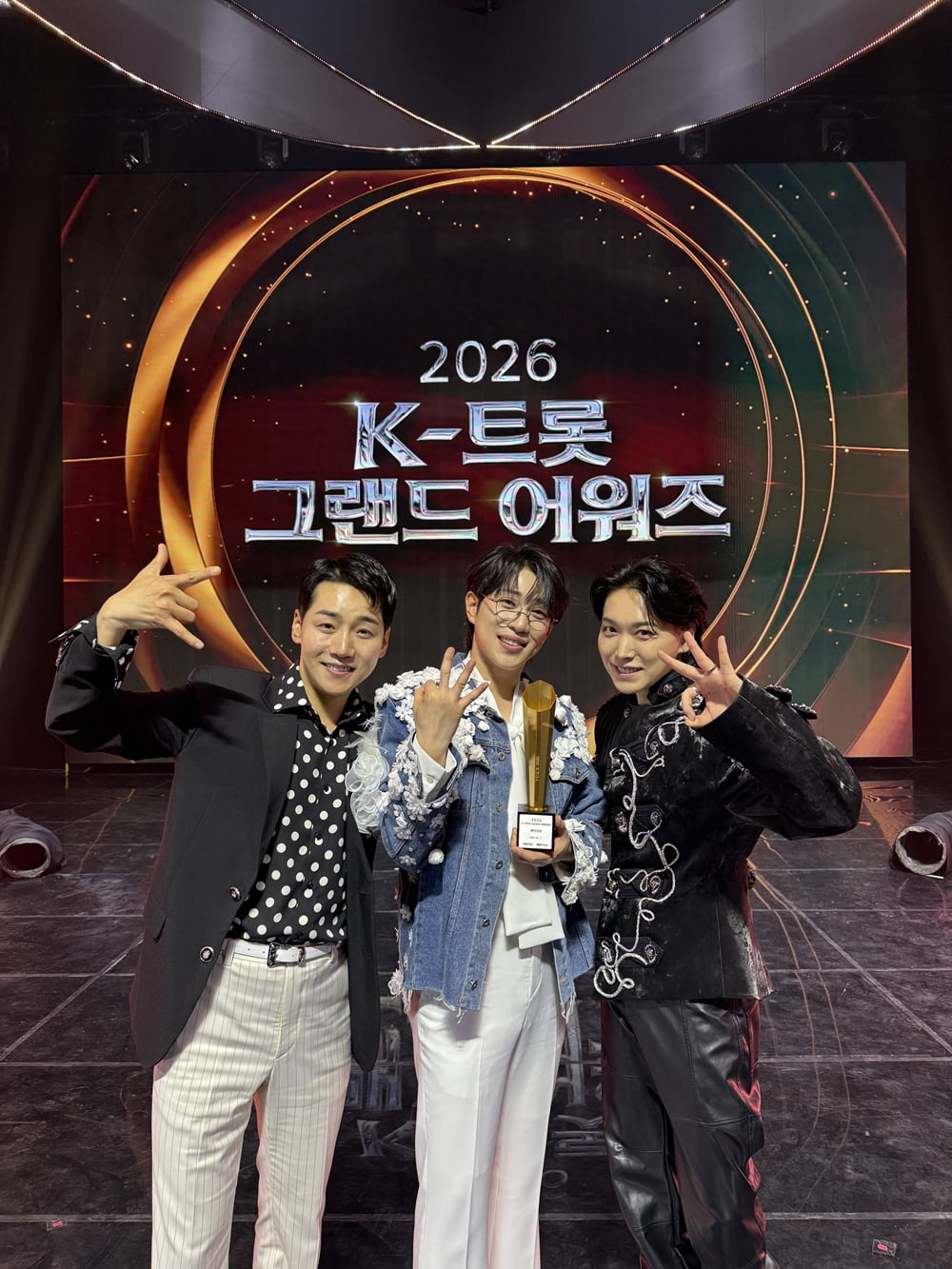[텐아시아=김세아기자]김균민회장은지난11일서울경희대학교평화의전당에서개최된'2026K-트롯그랜드어워즈(KTGA)'시상식에서영예의제작자상을수상했다./사진:토탈셋토탈셋의김균민회장이대중음악산업발전에기여한공로를다시한번인정받았다.김균민회장은지난11일서울경희대학교평화의전당에서개최된'2026K-트롯그랜드어워즈(KTGA)'시상식에서영예의제작자상을수상했다.이번수상은전세대를아우르는트로트시장에서세계적가능성을지닌아티스트를발굴하고그들이역량을마음껏펼칠수있도록전폭적인지원을아끼지않은공로에따른결과다.이날김균민회장을대신해토탈셋소속가수박군과성민,안성훈이대리수상자로나섰다.이세사람은위트넘치는수상소감과유쾌한에너지를발산하며현장의축제분위기를한층뜨겁게달궜다.김균민회장은약35여년간룰라,샤크라,디바등수많은대중가수를발굴,스타로발돋움시킨제작자로최근에는트로트전설진성과한혜진,트로트대세로자리잡은박군과안성훈,아이돌에서트로트가수로성공적인자리매김을마친성민,트로트의미래를이끌어갈기대주오유진과이수연등탄탄한라인업을구축하며트로트시장에압도적인존재감을드러내고있다.김회장은지난2021년한국콘텐츠진흥원에서공로상을받고2024년대중음악산업전반에걸친영향력을인정받아문화체육관광부장관표창을받은바있어이번수상을통해토탈셋의명성을다시금입증했다.한편김균민회장이이끄는토탈셋에는진성을필두로한혜진,박군,정다경,안성훈,성민,오유진,삼총사,이수연등트로트아티스트들이소속되어있다.김세아텐아시아기자[email protected]©텐아시아.무단전재및재배포금지.