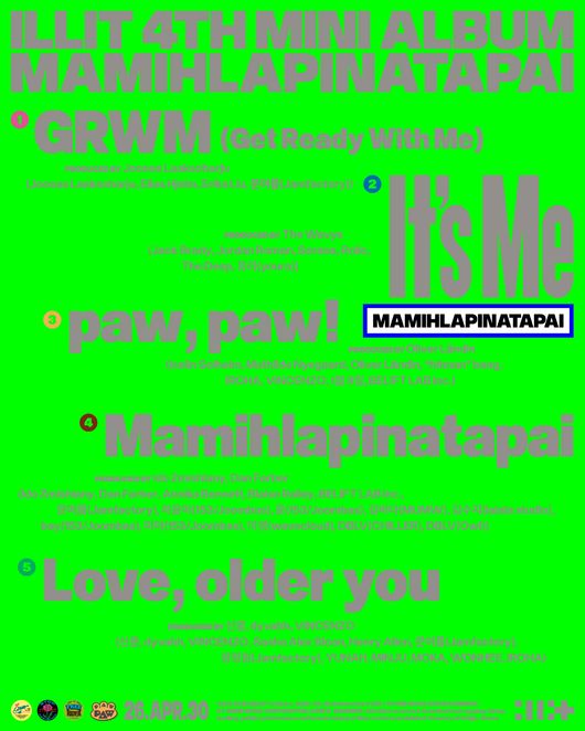 [OSEN=지민경기자]그룹아일릿(ILLIT)이1020세대의공감을유발하는신보로한층진화한‘아일릿코어’를선보인다.아일릿(윤아,민주,모카,원희,이로하)은31일정오하이브레이블즈유튜브채널에미니4집‘마밀라피나타파이’(MAMIHLAPINATAPAI)의트랙리스트를공개했다.이에따르면신보에는타이틀곡‘It’sMe’를포함해‘GRWM(GetReadyWithMe)’,‘paw,paw!’,‘Mamihlapinatapai’,‘Love,olderyou’등총5곡이실린다.‘It’sMe’는첫데이트이후좋아하는상대와관계정의에대한고민이깊어지는찰나,“너의최애는바로나야!”라고당돌하게외치는노래다.이곡은개성강한싱어송라이터유라(youra)와더딥(TheDeep)이작사에참여해아일릿의당찬매력을극대화했다.싱글1집타이틀곡‘NOTCUTEANYMORE’에서독특한가사로아일릿특유의엉뚱발랄함을감각적으로풀어내호평받은유라가멤버들과다시만나일으킬시너지에기대가모인다.트랙전반에동세대의관심사와정서가투영돼있다.너와함께민낯으로속마음을나누는내밀한순간을그린‘GRWM(GetReadyWithMe)’,사랑하는반려동물을향한애틋함을담은‘paw,paw!’가듣는이들의공감을자극할전망이다.‘paw,paw!’는멤버이로하가데뷔후처음으로작사에참여,자신의경험담을녹여진솔한노랫말을썼다.여기에하이브방시혁의장(“hitman”bang)이힘을보태섬세한감정선을만들며곡의완성도를높였다.또한수많은선택과책임앞에서‘게으른완벽주의자’가되어버린동시대청년들에게아일릿이전하는곡‘Mamihlapinatapai’,힘들고포기하고싶은순간들이있던어린시절의나에게보내는편지같은곡‘Love,olderyou’가앨범을풍성하게채운다.특히‘Love,olderyou’는다섯멤버의실제이야기를담아아일릿만의독보적인감성을예고했다.한편이번트랙리스트는모션포스터형태로제작돼시각적으로도강렬한인상을남겼다.DVD화면보호기에서영감을얻은포스터는화면안을부유하는앨범로고가벽면에충돌할때마다색상이전환되는연출이포인트다.아일릿의다채로운콘셉트와폭넓은음악스펙트럼을직관적으로구현한디자인이신보에흥미를더한다.아일릿의미니4집‘마밀라피나타파이’는4월30일발매된다./[email protected][사진]빌리프랩(하이브)Copyright©OSEN.무단전재및재배포금지.