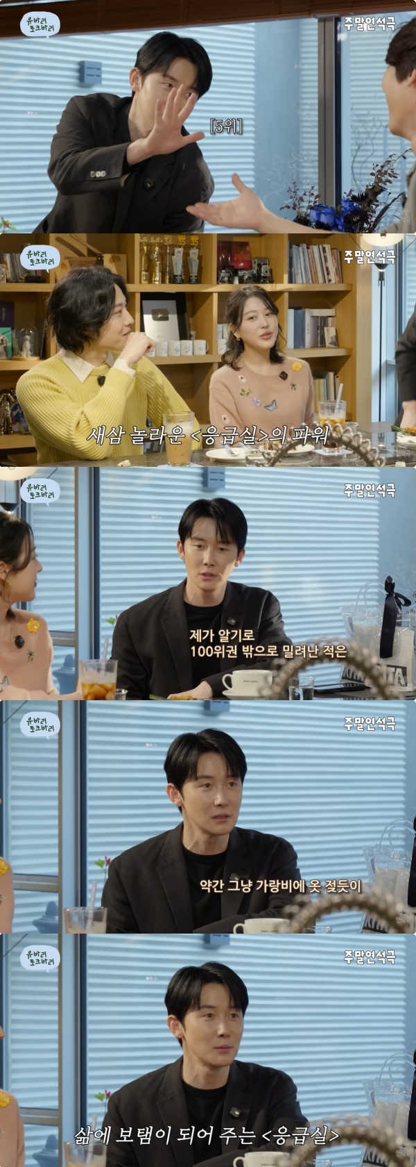 사진=유튜브주말연석극[스포츠투데이김태형기자]배우김준한이밴드이지(izi)시절을떠올리며히트곡'응급실'저작권료를밝혔다.28일유튜브채널'주말연석극'에는'오늘토크못빠져나와..유바리토크바리|영업30일차|이종원장다아김준한'이라는영상이게재됐다.영화'살목지'의이종원,장다아,김준한이게스트로출연했다.밴드이지의드러머출신인김준한은"나는마산출신이다.고등학교졸업하고서울로올라왔다.음악을하기위해서"라며"음악시작은고등학교때부터했는데완전히결심한건고3때였다"고밝혔다.그는"고등학교때호기심에밴드부를들어가게됐다.그나이에친구들끼리모여서뭐에빠져들면앞뒤안가리고끝까지가지않나.그때부터드럼스틱을잡기시작했다"고말했다.이에이종원역시"저도고등학교때밴드부드러머였다"고밝혔다.드럼으로공감대를형성하는모습에장다아는"저는드럼이랑연이없다"며웃었다.김준한은"드럼이랑멀어진지는한15년넘은것같다"고말했다.하지만과거기억을더듬은그는이지의대표곡'응급실'드럼연주를자연스럽게소화해내감탄을자아냈다.김준한은"옛날생각나네"라고말했고,유연석과이종원,장다아는뜨거운박수를보냈다.유연석이"노래방가면자동으로'응급실'선곡이돼있을것같다"고하자,김준한은"항상돼있다"며"노래가늘었다.이제는노래가익숙하다"고말해웃음을자아냈다.그러면서유연석에게"우리회식때도부르고그랬다"고떠올렸다.유연석은"'응급실'이항상노래방톱100에있었다"며"그런데요즘은톱100에서밀려났다더라"라고말했다.이에김준한은"오해다.아직도20위권안이다"라고밝혔다.제작진확인결과3월15일기준'응급실'은노래방차트5위를기록중이었다.유연석은죄송하다고사과했고,김준한은"스테디셀러다.제가알기로100위권밖으로밀려난적은20년내로없다"고말했다.이어이종원이노래방저작권료를묻자,김준한은"가랑비에옷젖듯이계속삶에보탬이되고있다"고밝혔다.유연석은"달리'대한민국에서건물주되는법'을하신게아니었네"라며놀랐고,이종원은"'응급실'로건물주되는법"이라고말해웃음을자아냈다.[스포츠투데이김태형기자[email protected]]Copyright©스포츠투데이.무단전재및재배포금지.