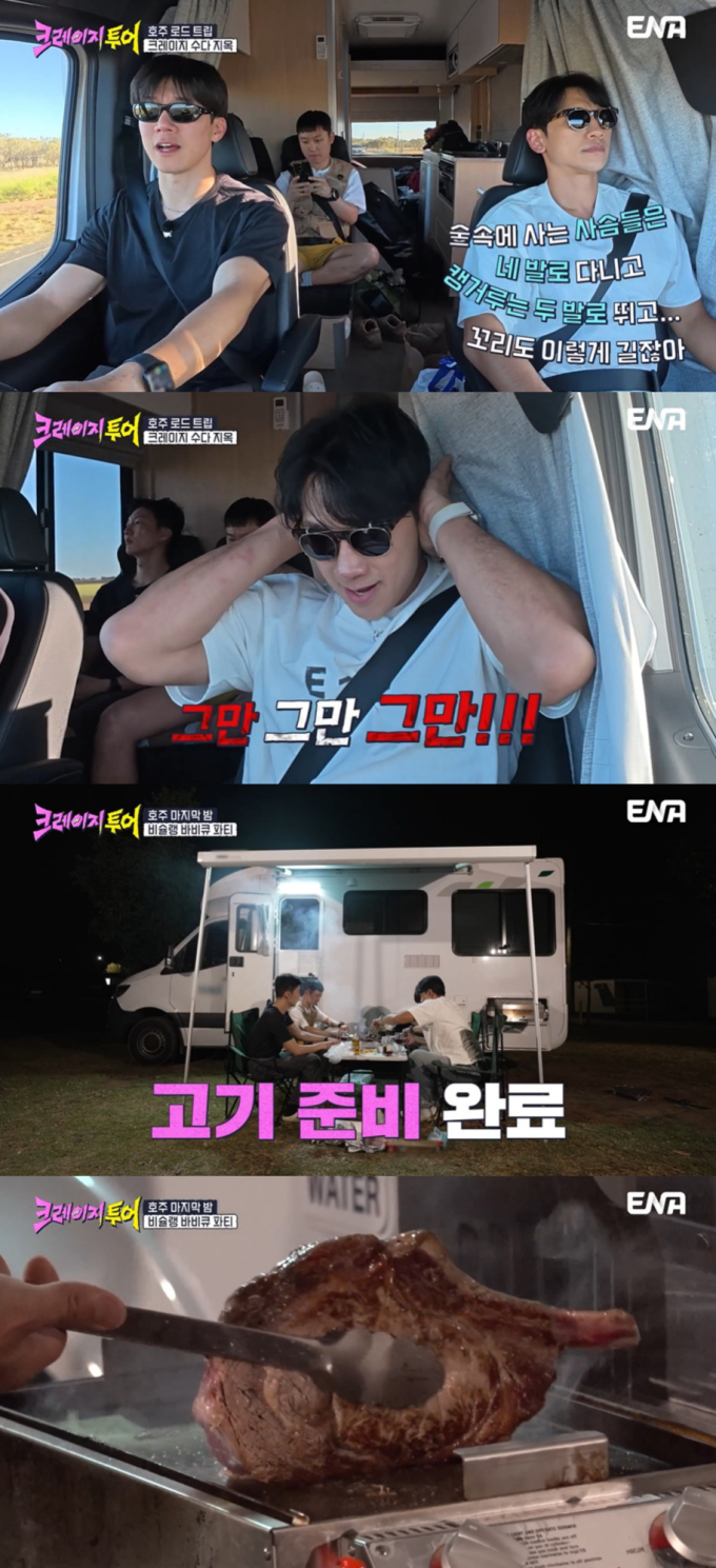 예능‘크레이지투어’(제공:ENA,TEO)ENA예능‘크레이지투어’가20년지기절친비(정지훈)와김무열의손절위기를예고했다.오늘(28일)토요일저녁8시30분방송되는ENA‘크레이지투어’5회에서는호주에서의마지막밤을보내기위해캠핑장으로향하는멤버들의파란만장한여정이그려진다.특히한마디를던지면일장연설로받아치는집요한수다력보유자김무열이절친비의인내심을한계치까지몰아붙이며20년우정이최대고비를맞을예정이다.로드트립의시작은유쾌한떼창으로포문을연다.‘DJ무열’의화려한선곡에맞춰흥을돋우며드라이브의낭만을즐긴것도잠시,조수석에앉은비를향한김무열의멈추지않는‘토크광기’가시작되며분위기가반전된다.그동안젠틀하고부드러운이미지뒤에숨겨진‘토크광인’의모습으로반전을선사한김무열.이날의토크주제는멤버중누구도생각해본적없을법한‘캥거루는왜두발로뛰게진화했는가’다.김무열은조수석에앉은비를향해자신의추론을쏟아내기시작하고,계속되는수다공격에비는결국“너진짜사람미치게할래?이제는너한테대꾸할가치를못느끼겠다”라며폭발하고만다.그럼에도전혀굴하지않은김무열은“같이있는데‘가치’를못느껴?”라는언어유희드립까지투하,결국비가두손두발다들었다고.이윽고조수석탈출선언하며,빠니보틀을투입시키는데,김무열의‘수다지옥’을맛본빠니보틀역시동공지진을일으키며큰웃음을선사할예정이다.‘수다지옥’끝에도착한캠핑장에서는그토록고대하던비쉐린스테이크하우스가다시문을연다.호주입성첫날,‘마요네즈스테이크’로멤버들의찬사를받았던비가이번에는그릴과숯불을이용해한층업그레이드된고기집도에나선것.엄청난두께의토마호크와양갈비,치즈미트볼까지현란한요리로전문셰프급실력을뽐낸다.그맛을본멤버들조차“잊지못할맛집!”이라는감탄사가절로터져나온호주고기한상차림이시청자들의침샘을제대로자극할전망이다.제작진은“이번회차는김무열의은은한광기가서린토크와비의수준급요리실력이어우러져시청자들에게‘단짠’의재미를확실히선사할것”이라며,“20년지기절친이라가능한거침없는티격태격모멘트는물론,직접헬기를타고하늘위에서소떼를모는역대급스케일의소몰이미션까지한시도눈을뗄수없는크레이지투어가계속되니기대해달라”고전했다.한편ENA‘크레이지투어’는오늘방송되는5회부터기존보다40분늦은저녁8시30분에방송된다.정윤지기자[email protected]뉴스연예팀기사제보[email protected]©bnt뉴스.무단전재,재배포및AI데이터활용금지