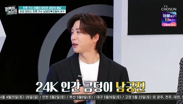 TV조선‘퍼펙트라이프’TV조선‘퍼펙트라이프’[뉴스엔유경상기자]남궁진이금덩어리태몽에금이많은사주까지자랑했다.4월15일방송된TV조선‘퍼펙트라이프’에서는가수남궁진(39세)과모친조형숙(73세)이출연했다.감성보이스,짐승팔뚝을가진반전매력의트롯가수남궁진이출연하자이성미가“언제부터그렇게운동을열심히했냐.짐승팔뚝아직잘있죠?볼수있을까요?”라며팬심을드러냈다.남궁진은선뜻팔뚝을보여줬고,이성미가“알배기도루묵같다.꽉찼다”고감탄해웃음을자아냈다.현연은남궁진모친에게“아드님을너무잘낳으셨다.남궁진은언제부터이렇게잘생겼냐”고질문했다.모친은“낳을때부터잘생겼다”며태몽에대해“저는안꾸고외할머니가꾸셨다.어느분이금덩이이만한걸아들이아니라저한테줬다고한다”고말했다.남궁진은“제가사주에금이많다고한다”며태몽과이어지는사주를말했고,현영이“금덩어리를낳으셨네.태몽이너무좋다”고감탄했다.신승환도“금이얼마나올랐냐.가치가계속오르고있다”며거들었다.뉴스엔유경상yooks@기사제보및보도자료[email protected]ⓒ뉴스엔.무단전재&재배포금지Copyright©뉴스엔.무단전재및재배포금지.