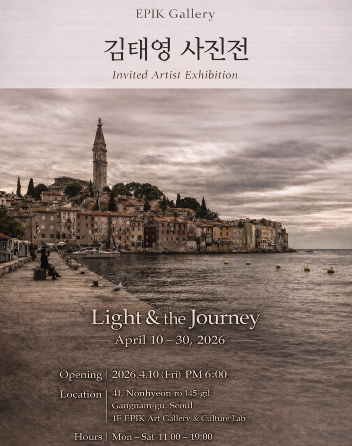 (MHN홍동희선임기자)빛은공평하게쏟아지지만,찰나의흔적을영원으로박제하는것은온전히사진가의몫이다.평생을묵묵한직장인으로살면서도세계오지를누비며자신만의'빛'을좇아온한남자의묵직한기록이관객들을찾아온다.사진작가김태영의12번째개인전'빛그리고여정(LightandtheJourney)'이오는4월10일부터30일까지서울강남구논현로에위치한복합문화전시공간EPIKArtGallery&CultureLab에서열린다.김태영작가의이력은남다르다.1989년부터37년간자동차회사에서근무한샐러리맨인그는치열한직장생활속에서도틈이날때마다카메라를메고세상밖으로나섰다.전세계56개국을82회에걸쳐여행하며기록해온빛의흔적과시간의결이이번전시에고스란히담겼다.특히아날로그감성이묻어나는사진작품들과함께,대형LED를활용한디지털전시를병행해시각적다채로움을극대화했다.호주아웃백의40도폭염속붉은석양,테즈마니아숲이뿜어내는바람의숨결,수백년된유럽의골목길까지.그가렌즈에담은세상은단순한관광지의풍광이아니다.작가는"빛은잠시머물다사라지지만,그순간이남긴감정은오래도록남는다"며풍경이품어온시간과장소의온도,침묵까지이미지안에담아내고자했다.37년의단단한일상이있었기에역설적으로흔들림없이빛의길을좇을수있었다는그의고백은깊은위로를건넨다.이장대한여정의이면에는지독한기다림과든든한'동반자'가있었다.작가는눈보라가몰아치는산정상에서,곰이튀어나올것같은새벽숲에서한컷을얻기위해추위에떨던날들동안불평없이곁을지켜준아내에게뭉클한헌사를바쳤다.사진은결국그가세상을이해하고아내와함께걸어온삶그자체인셈이다.작가의발끝과렌즈를따라걷다보면관람객역시각자의삶속에스쳐지나갔던빛의순간들을조우하게될것이다.작가와직접깊은대화를나눌수있는'오프닝아티스트토크'는개막일인4월10일오후6시에진행된다.사진=본인제공Copyright©MHN.무단전재및재배포금지.