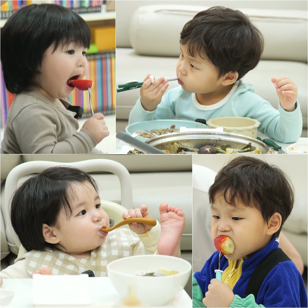 생후33개월정우와생후13개월하루의합동먹방현장이공개된다.iMBC연예뉴스사진오늘(11일)방송되는KBS2‘슈퍼맨이돌아왔다’612회는‘형따라해봐요이렇게’편으로MC김종민,랄랄이함께한다.특히‘슈돌’어벤저스은우-정우-하루의만남이성사돼기대를모으는가운데,정우가하루의먹방선생님으로변신해이목을집중시킨다.정우는하루앞에서딸기부터샤브샤브까지야무지게먹으며먹방의기술을전수한다.먼저딸기를포크로찍어우아하게한입맛본정우는“딸기는형아처럼먹어야돼”라며인생첫딸기시식을앞둔하루에게포크로딸기먹기를선보인다.하루는정우의먹방을관찰하더니곧눈앞의포크로딸기를찍어먹어아빠심형탁을깜짝놀라게한다.또한,정우는“삼촌고기는이렇게먹는거예요”라며고기먹방쇼를선보인다.“고기를소스에첨벙”이라고귀엽게말한정우는소스를찍은고기를입에넣고두눈을꼭감고입안에퍼지는고기의맛을음미한다.이에심형탁이“역시정우먹방은최고다”라며팬심을고백하자정우는“삼촌나중에고기많이사오세요!”라는깜찍한요청을해폭소를유발한다고.정우의맛깔진고기먹방쇼에감명을받은하루는배시시미소를짓더니아빠가쥐고있는숟가락을빼앗아들고스스로먹방을펼친다.숟가락으로국물을먹은후해사한미소와함께발따봉개인기를보여줘웃음을빵터지게한다.이어어깨를흔들며앙증댄스까지선보여정우의과외로한층더귀여워진먹방을예고해기대감을자극한다.iMBC연예김혜영|사진출처KBSCopyright©MBC연예.무단전재및재배포,AI학습금지.