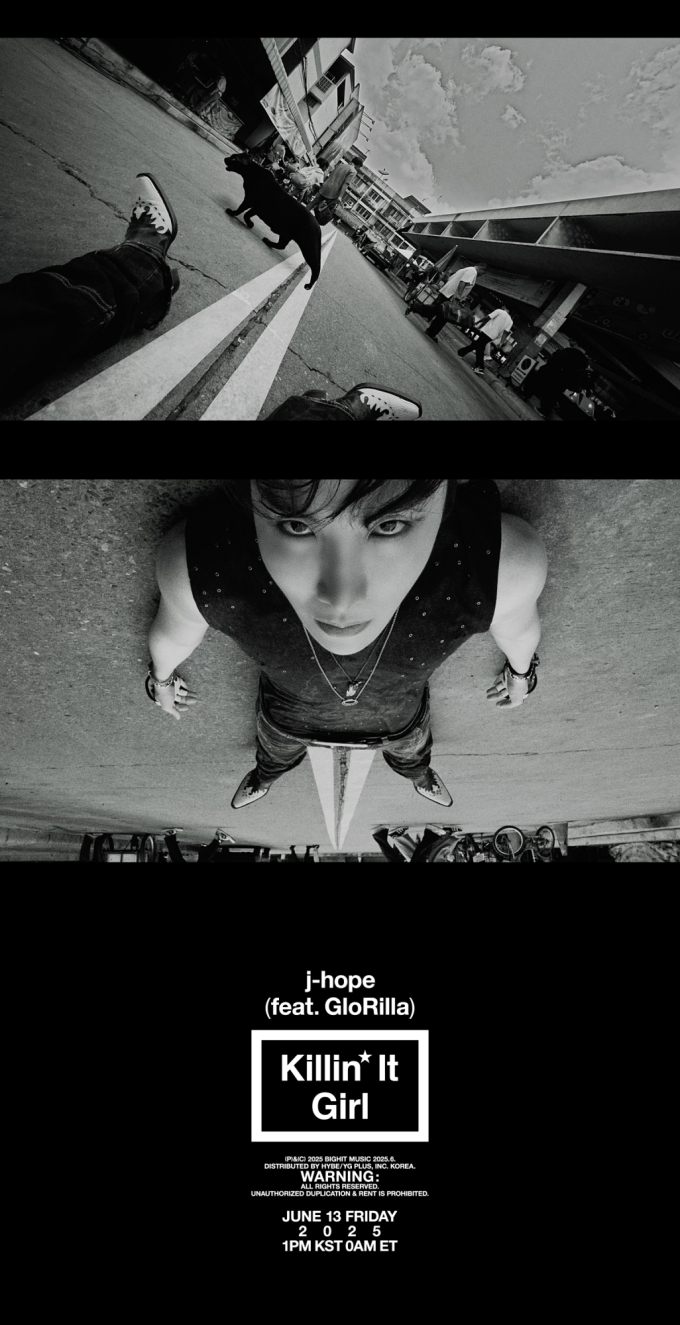 제이홉,‘Killin'ItGirl(feat.GloRilla)’MV티저공개(제공:빅히트뮤직)방탄소년단제이홉이오늘(9일)0시하이브레이블즈유튜브채널을통해신곡‘Killin'ItGirl(feat.GloRilla)’의뮤직비디오티저영상을공개했다.감각적인비트로문을여는이번영상은세련된흑백화면으로눈길을사로잡는다.제이홉은분주하게일상을살아가는사람들사이에서모습을드러낸다.그는도로한가운데똑바로누워매섭게눈을치켜뜨고있다.이윽고카메라앵글이180도회전하고,제이홉의강렬한눈빛위로그를호명하는목소리가들린다.이번영상은약20초의짧은분량이지만독특한구도와제이홉의카리스마로반복재생을유도한다.오는13일오후1시발표되는‘Killin’ItGirl(feat.GloRilla)’은사랑에빠진순간의설렘을솔직하게담은힙합(Hiphop)장르곡이다.이노래는제이홉이지난3월부터선보인‘SweetDreams(feat.Miguel)’,‘MONALISA’에이은솔로싱글프로젝트의대미를장식하는작품이다.제이홉은이번프로젝트에서각기다른장르의음악,상반된퍼포먼스를선보이며아티스트로서더욱확장된스펙트럼을보여주고있다.한편제이홉은13,14일경기고양시고양종합운동장주경기장에서열리는월드투어앙코르콘서트‘j-hopeTour‘HOPEONTHESTAGE’FINAL’에서신곡무대를최초공개하고활발한활동을이어갈예정이다.송미희기자bnt뉴스연예팀기사제보[email protected]©bnt뉴스.무단전재,재배포및AI데이터활용금지