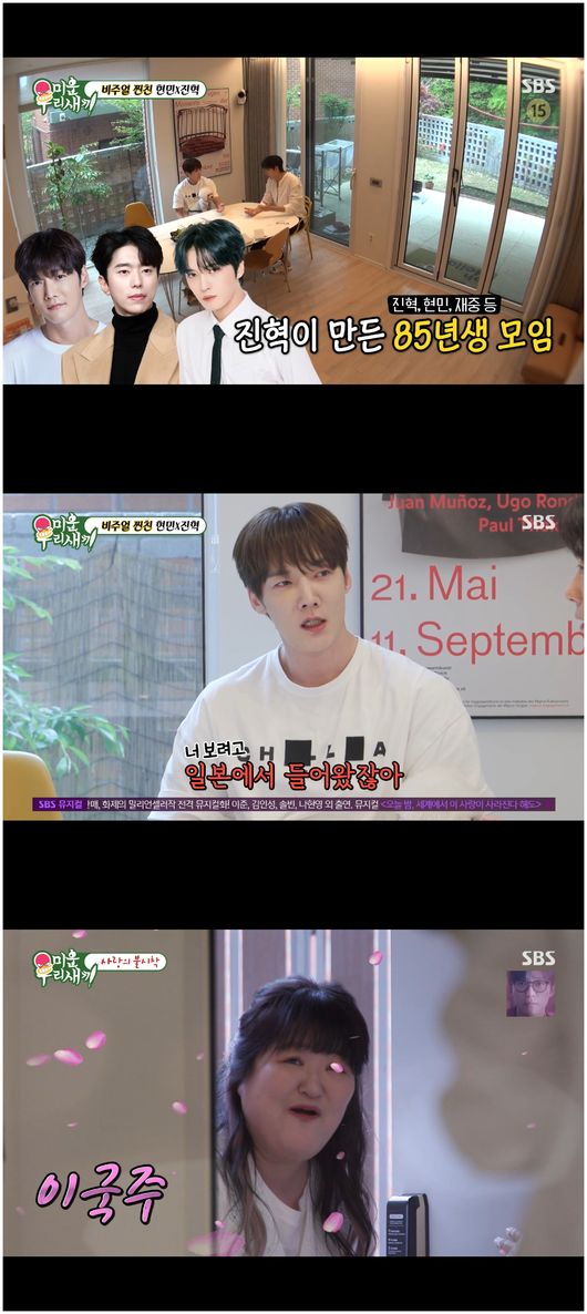 [OSEN=오세진기자]‘미운우리새끼’윤현민과김준호의결혼에대한관심이쏠렸다.8일방영한SBS예능‘미운우리새끼’에서는윤현민,최진혁,이국주85라인들의즐거운요리파티가그려졌으며김준호는허경완과김승수남매와함께허심탄회한이야기를즐겼다.최진혁은조용한편인윤현민을위해활달한여사친을초대했다.바로일본에서있다가바로귀국해서거대한업소용냄비를들고나타난이국주였다.윤현민어머니는“현민이가과묵하고우울해보인다.그래서개그맨같은친구를사귀면어떨까싶었다”라며이국주에대해한없이따스한눈빛을지었다.서장훈은“진혁이어머님이국주를되게좋아하셨다고”라고물었다.최진혁어머니는“국주가진혁이를정말잘챙기고너그럽다”라며이국주칭찬을아끼지않았다.신동엽은“이국주가주변사람잘챙기고,손도크고그렇다”라며칭찬을보탰다.아니나다를까,이국주는어묵두줄에곱창6kg그리고손수담근곱창전골양념통을그대로들고와푸짐한식사를차려냈다.최진혁은“윤현민은이상형이뭐야”라며물었다.윤현민은“그런거있지않냐.어떤동작에꽂히는거.그냥어떤한장면이스틸컷처럼오는게있더라.슬로우모션처럼느리게박히는거”라며영화같은사랑을꿈꾸는듯말했다.이국주는“둘이서로연애이런걸다공유하냐”라고물었다.최진혁은“그냥만나는사람있다,이정도로말한다”라며쑥스럽게웃었다.이국주는“내가최진혁타로를봐준적이있었다”라며고개를끄덕여보였다.그리하여이국주가본타로에서,윤현민은과연결혼을하게될것인가?그러나이국주는“이건나가리인데.이건결혼에대해힘이없는거다.소년,여왕,기사,왕이있는데,소년은가장적은거다.이컵은마음인데,물고기가있다는건자신만의고집은있는거다.결혼에대해서‘난이게좋은데?’라는카드가나왔다”라고말해윤현민의어머니를절망에빠뜨렸다.한편김준호는김승수,허경완의누나와동생들까지함께한자리에참석했다.김준호의동생김미진은누누이김지민이아깝다고팩트를꼬집는발언을해오던터였다.기분좋은식사자리가이어지고,이들은솔직한생각을공유하는시간이되었다.김미진은“정말많이잘생겨졌다.관리의정석이다.리프팅한것처럼올라붙었다”라며자신의오빠에대해한창칭찬했다.이에허경환의동생은“결혼도너무축하드리고,너무부럽다.도대체우리오빠는뭘하고있는것인가”라며부러움을표했다.이를들은김승수는“김미진입장에서김지민이친언니면김준호와의결혼을찬성하겠냐”라며물었다.그러나김미진은그질문을듣자마자악을질렀으며,김준호를당황하게했다.김미진은“김지민이우리오빠랑결혼하는걸보고‘미쳤나’싶었다”라고말해웃음을안겼다./[email protected][사진]SBS예능‘미운우리새끼’Copyright©OSEN.무단전재및재배포금지.