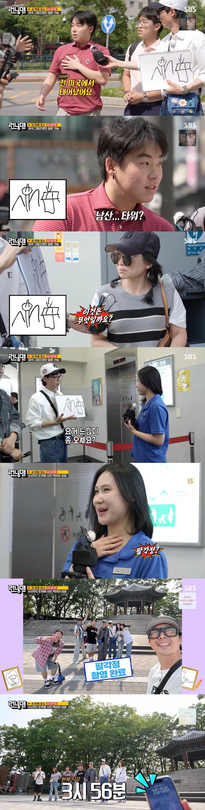 [SBS연예뉴스|김효정에디터]똥손유재석,시민들도인정했다.8일방송된SBS'런닝맨'에서는'그리는대로트립'레이스가진행됐다.이날방송에서는똥손유재석이그린그림만가지고나들이를떠나는'그리는대로트립'레이스가펼쳐졌다.멤버들은유재석이그린그림만가지고시민들에게그림이가리키는장소가어딘지묻고시민의답에따라이동해야하는것.주어진장소세곳을제한시간안에모두방문한후인증사진을찍어야만레이스성공,만약실패할경우에는벌칙으로멤버전원이자이로스윙에탑승해야하는것.첫미션은유재석이그린그림만보고나머지멤버들이30분안에오프닝장소에도착해야했다.우여곡절끝에하하와김종국,양세찬,최다니엘은제한시간안에도착했다.하지만지석진과송지효,지예은은끝까지갈피를잡지못해미션에실패했다.그리고이날벌칙이공개되자유재석과지석진은손사래를치며"안돼안돼.우리그거타고2시간잤잖아,차에서.20대때였는데어지러워서잠을잤다"라고했다.특히지석진은"여기뭐지귀뚜라미관인가?아달팽이관때문에평형감각이망가져가지고계속잠을잤다"라며절대벌칙을받아서는안된다고어필했다.어렵게모든장소를돌고마지막나들이장소는팔각정.유재석의부족하디부족한그림에멤버들은덧그리기찬스를썼다.그런데덧그리기찬스로그림을그릴멤버로유재석에버금가는똥손양세찬이뽑혀멤버들을절망하게만들었다.멤버들고알아보기힘든그림을들고멤버들은질문을할시민을물색했다.그런데하필멤버들이고른시민은미국에서태어나서한국으로여행을온조나단과라이언.그럼에도이들은유재석과양세찬이그린그림을보고남산타워를떠올려멤버들을안도하게만들었다.마지막미션장소에서멀지않은남산타워로향한멤버들.무사히인증사진을찍은후또다른시민을물색했다.제한시간26분을남기고시민이외친답은화장실.그리고다음시민은휴지통이라고답을말해아쉬움을자아냈다.그럼에도근처에서인증사진을모두촬영할수있음에기뻐한멤버들은마지막기회라고생각하고남산타워에서7년째근무중인직원에게질문했다.그림을보고느낌이온다던이시민은정답으로팔각정을말해모두를환호하게했다.이에멤버들은어떻게알았냐며놀랐고,시민은"딱보면알지않냐"라며7년의짬바를여실히드러내멤버들의미션을성공하도록이끌었다.Copyright©CopyrightⓒSBS.Allrightsreserved.무단전재,재배포및AI학습이용금지