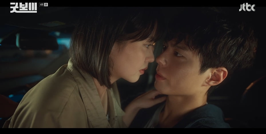 [스타뉴스|김정주기자]/사진=JTBC토일드라마'굿보이'방송화면'굿보이'김소현과박보검이밀착스킨십으로야릇한분위기를자아냈다.8일방송된JTBC토일드라마'굿보이'에서는'뺑소니사건'의배후를밝히기위해잠복근무에나선윤동주(박보검분)와지한나(김소현분)의모습이그려졌다.이날두사람이속한강력특별수사팀은차량밀수업자를검거하는이른바'몽키작전'을수행하기위해잠복근무에나섰다.이들은차량도난범을유인하기위해경찰청장조판열(김응수분)의차량을몰래빼내미끼로던졌다.지한나는김종현(이상이분)과한팀으로잠복할계획이었으나두사람사이를질투한윤동주가선수쳐지한나와한차에탑승했다.이를본신재홍(태원석분)은"둘이오붓하니정분나기딱좋겠다"라고말해김종현의심기를건드렸다.이에김종현은매서운눈초리로두사람의차량을응시하며긴장의끈을놓지않았다./사진=JTBC토일드라마'굿보이'방송화면윤동주는차량을훔치는도난범을보고휴대전화카메라를켰다가실수로클락션을울렸다.도난범이수사차량에접근하자조수석에앉아있던지한나는윤동주의몸위로올라가키스하는모습을연출했다.도난범이손전등을비추자지한나는유리창을손바닥으로가리며위기를모면했다.지한나의임기응변으로도난범은"좋은시간되라"라며자리를떴지만윤동주는지한나의머리카락을조심스럽게쓸어넘기며야릇한미소를지었다.계속되는밀착스킨십에민망해진지한나는"스탑.원위치"라고외치며황급시조수석으로이동했다.지한나의불만섞인핀잔에도윤동주는승리의미소(?)를지어웃음을자아냈다.김정주기자[email protected]©스타뉴스&starnewskorea.com,무단전재및재배포금지