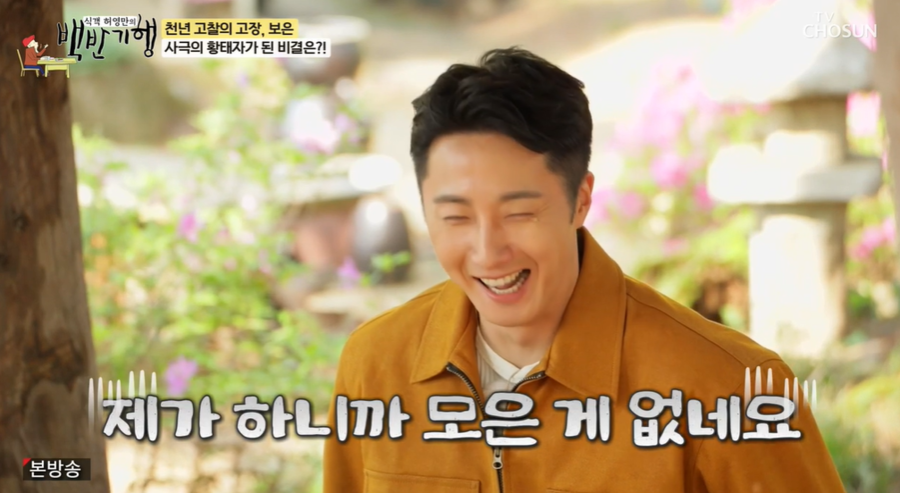 ▲사진|'허영만의백반기행'방송화면[스포티비뉴스=배선영기자]배우정일우가모은돈이하나도없다고말했다.8일방송된TV조선'식객허영만의백반기행'(이하백반기행)에서정일우는식객허영만과함께충북보은맛집투어를진행했다.이날정일우는바쁠때는작품을한해에두개씩하기도했다며"제가군대가기직전1년반동안7작품을했었다"고말해놀라움을자아냈다.이에허영만이"아주이렇게잘나가는분을모셨어"라며감탄하자정일우는"그때는한창일할때라그렇게했다"였다고겸손하게밝혔다.정일우는수입관리는누가하냐는질문에"20대후반까지어머니가해주시고그이후제가했다.제가하니까모은게없다"라고솔직하게말해웃음을자아냈다.<저작권자ⓒSPOTVNEWS.무단전재및재배포금지>Copyright©스포티비뉴스.무단전재및재배포금지.