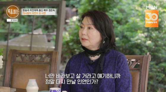 [스타뉴스|김노을기자]/사진=MBN방송화면배우정은숙이첫사랑인나한일과옥중결혼을후회했다.5일방송된MBN'특종세상'에는1980년대김청,홍진희,이휘향등배우와왕성하게활동한정은숙이출연했다.이날정은숙은첫사랑인배우나한일과재혼했던배경에대해"우리엄마가돌아가신상황이었는데(옥살이중이던나한일한테)연락이와서인연인가싶었다"고운을뗐다.이어"그당시에는이혼하고또그사람이잘못되어서나를찾았으니,나도혼자일때라잘살아보려고만난거다.결혼생활3년동안굉장히많은일이있었다"고말했다./사진=MBN방송화면이후정은숙은평소절친한배우김혜정과만나여러이야기를나눴다.김혜정은정은숙을향해"이제는누구를잘못만나면못일어난다.회복이안되니까조심해야한다.앞으로는누구한테그렇게혼신을다해서퍼주고그러지마라"고조언했다.이에정은숙은"어릴때만난사람이니까안믿을수가없었다"며"엄마딱돌아가시자마자(나한일한테서)연락이왔다.그사람이'양쪽어머니들이다시인연을맺어준거다'라고말을하더라"고털어놨다.이를듣던김혜정은"솜사탕처럼얘기한것"이라고일침을가했다.정은숙은"(나한일이)어릴때나한테못한거보상해주고너만바라보겠다고하니까내딴에는정말다시만날인연인가싶었던거다"고토로했다./사진=MBN방송화면김혜정은"(이혼은)신이도운거다.안그랬으면네가계속정신적,육체적,금전적으로계속힘들었을것"이라고정은숙을위로했다.정은숙은"그사람이맨날뭐한다고밖으로다니긴다니는데뭐하러다니는지모르겠더라.내색은안했지만실망했다.처음도마지막도악연"이라고밝히며씁쓸한표정을지었다.정은숙은각별한사이인조카도만났다.정은숙은조카와마주앉아"정말많은사람들이재혼을반대하는상황에서내가결혼을했다.나머지인생을의지도하고그렇게살려고마음을먹었는데평탄하지못하게돼서조카들한테가장미안하다"고미안한마음을드러냈다.그러자정은숙조카는"고모가이혼했다고해서좀놀랐다"면서도"고모가구렁텅이에서나와서나는속으로'야호'외쳤다.고모는속상했겠지만나는고모가거기서해방돼서좋아했다.그사람이랑계속살면고모는고생만한다.그냥혼자사는게낫다"고김혜정과같은의견을보였다.한편정은숙은배우나한일과2020년이혼했다.나한일은투자사기혐의로실형을선고받고복역하던중첫사랑인정은숙과재회해2016년4월옥중결혼식을올렸으나결국각자의길을걷게됐다.김노을기자[email protected]©스타뉴스&starnewskorea.com,무단전재및재배포금지