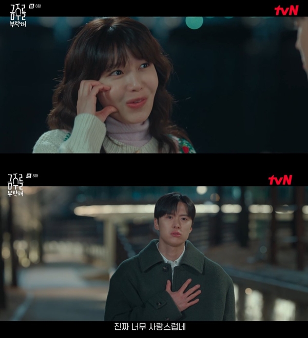 사진=tvN금주를부탁해캡처[스포츠투데이송오정기자]'금주를부탁해'최수영,공명이달달한연인관계를선보였다.3일방송된tvN'금주를부탁해'(극본명수현전지현·연출장유정조남형)에서는본격적인열애를시작한한금주(최수영)와서의준(공명)의달달한순간이그려졌다.서의준은야근하다한금주와문자를주고받았다.'이제자려고'라는한금주의문자에다시모니터로고개를돌린서의준이었지만,다시한금주가'보고싶다'라고문자보내자그길로외투를들고어디론가향했다.서의준의뛰는길마다하트가피어올랐다.그시각문자에답이없자한금주는"바쁜가보네"라며다시누웠지만,'집앞이야'라는서의준의문자가도착하자쏜살같이튀어올랐다.한금주는자려고준비하다말고의상까지고민한끝에서의준과만나꽁냥꽁냥한밤데이트를즐겼다.또한서의준은야근을마치고회사를나오는한금주를데리러가며애정을드러냈다.두사람은비밀열애중이었지만,사람이없는틈을타포옹하며마음껏애정표현을즐겼다.서의준은한금주를데려다주고도"가지마.나랑같이있자"면서한금주를붙잡았다.두사람은어색한분위기속집에들어섰다.한현주가손을씻으러간사이,서의준은급하게거실을치우다테이블에부딪히고말았다.한현주는화장실에서"진도가왜이렇게빠른거냐"면서도속옷을확인하며떨리는심경을드러냈다.각자의작은소란이벌어진뒤,저녁을준비하는서의준에게한금주는"서울안갈거다"고선언했다.며칠동안고민하다내린결론이라고.힘들지않겠냐는질문에한현주는"너자주못보는게더힘들거같다"고능청스럽게말했다.다만두사람의비밀연애는그리오래가지못했다.봉선화(김보정)에게들키고만것.봉선화가양다리를걸친다고오해하며멱살잡이를하자서의준과만사귀고있다고고함을쳐서온동네에소문나버렸다.비밀열애5일만이었다.동네사람들은물론금주의어머니김광옥(김성령)도"의준이랑더놀다가내일와도되는데"라며장난쳤다.그러면서도두사람의열애를반긴김광옥은벌써부터서의준을사위라고부르고고기반찬을챙겨주며기쁨을감추지못했다.[스포츠투데이송오정기자[email protected]]Copyright©스포츠투데이.무단전재및재배포금지.