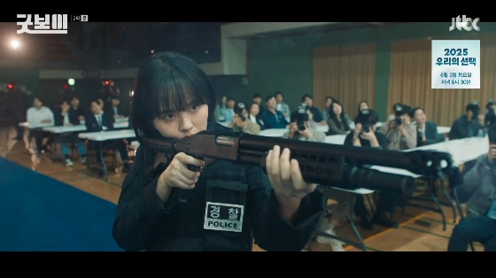[스타뉴스|김정주기자]/사진=JTBC토일드라마'굿보이'방송화면'굿보이'에서김소현이경찰청장을저격했다.1일방송된JTBC토일드라마'굿보이'에서는인성경찰서의'강력특별수사팀'에합류하게된지한나(김소현분)가허울뿐인팀의정체성에실망하고사직서를제출하는모습이그려졌다.이날인성경찰서에는국가대표출신어벤져스4인방을취재하려는취재진으로인산인해를이뤘다.기자들은페인트총으로괴한을제압한지한나와맨홀뚜껑으로차를뒤엎은신재홍(태원석분),죽도로괴한을때려잡은김종현(이상이분),맨주먹으로금토끼파를일망타진한윤동주(박보검분)에게마이크를들이밀며취재경쟁을펼쳤다./사진=JTBC토일드라마'굿보이'방송화면이에경찰청장조판열(김응수분)은경찰서홍보에이들을활용하기위해한시적으로강력특별수사팀을신설했다.현장출동을예상했던팀원들의기대와달리신종진입장비도입시연회에차출된이들은실망감을감추지못했다.신재홍은"특수팀이아니라홍보팀이었네요.김종현경사가왜합류하지않았는지알겠다"라고푸념했다.특히지한나는자신을"한나양"이라고부르며하대하는조판열에게분노하다가결국기관총으로시연을보이던중조판열에게총을겨눴다.지한나의갑작스러운저격에그대로나가떨어진조판열은지한나를자르라고소리질렀다.김종현은막무가내인조판열에게"지금지한나를자르면여론이안좋아질것"이라며사황을수습했다.그러나지한나는녹록지않은형사생활에신물을느끼고미련없이사표를제출했다.김정주기자[email protected]©스타뉴스&starnewskorea.com,무단전재및재배포금지
