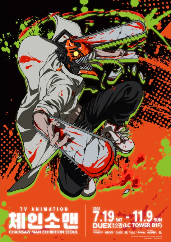 (엑스포츠뉴스이정범기자)'체인소맨展'이홍대에서개최된다.최근웨이즈비는TV애니메이션'체인소맨'전시회를오는7월19일부터11월9일까지덕스(DUEX)홍대2관에서개최한다고밝혔다.일본만화가후지모토타츠키원작TV애니메이션'체인소맨'은2022년10월전세계에방영된이후인기를끈작품이다.'체인소맨'원작은슈에이샤(shueisha)의앱'소년점프+'에서연재중이며,누적발행부수는3,000만부를돌파했다.애니메이션은'주술회전','진격의거인:파이널시즌'등을제작한마파(MAPPA)가담당했다.이작품은부모의빚을갚기위해악마사냥꾼으로살아가던소년덴지가'체인소악마'포치타와계약을맺고체인소맨으로부활하면서펼쳐지는이야기를그린다.전시회는2023년일본도쿄에서처음열렸다.올해는아시아투어를진행중으로,홍콩인큐베이스아레나와대만을거쳐한국에상륙했다.이번전시는애니메이션1화부터12화까지주요에피소드속명장면을재현하며,관람객이애니메이션세계에몰입할수있도록구성했다.현장에서는체인소맨,마키마,파워,하야카와아키등주요캐릭터의1:1실물크기피규어가전시되며,애니메이션원화,콘셉트아트,스토리보드,캐릭터설정자료등제작사마파가엄선한전시물도공개된다.또한애니메이션제작과정을담은메이킹영상과다양한포토존이마련되며,일본오리지널굿즈와한국전시한정굿즈를선보인다.이와함께체인소맨캐릭터들과기념촬영을할수있는포토서비스도운영된다.한편,덕스(DUEX)는만화,애니메이션전문전시장이다.사진=웨이즈비이정범기자[email protected]©엑스포츠뉴스.무단전재및재배포금지.