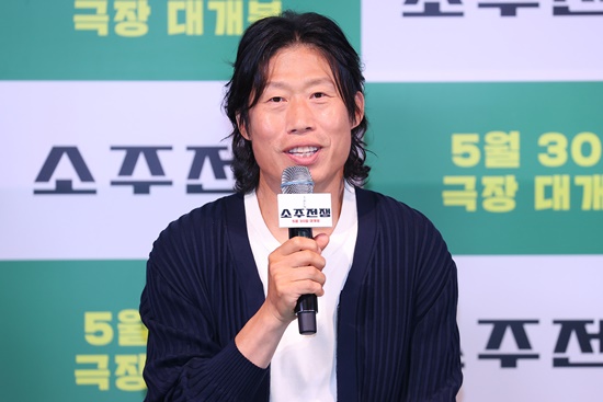 (엑스포츠뉴스용산,김유진기자)유해진이'소주전쟁'에서실제소주를마시며촬영한일화를전했다.29일오후서울용산구CGV용산아이파크몰에서영화'소주전쟁'언론시사회가열렸다.이자리에는배우유해진,이제훈,손현주,바이런만이참석했다.'소주전쟁'은1997년IMF외환위기,소주회사가곧인생인재무이사종록(유해진분)과오로지성과만추구하는글로벌투자사직원인범(이제훈)이대한민국국민소주의운명을걸고맞서는이야기를담은영화다.유해진이'회사가곧인생'인국보그룹재무이사표종록역을,이제훈이'일은일이고,인생은인생'인최인범역으로분했다.또손현주가파산위기에몰린국보그룹회장석진우역을,최영준이국보그룹의위기관리를맡은법무법인무명의대표변호사구영모역을맡았다.홍콩배우바이런만은글로벌투자사솔퀸의홍콩본부장고든역으로지원사격에나섰다.영화는1997년위기의대한민국을배경으로회사와인생모두를전혀다른시선에서바라보는두사람이소주하나로가까워지고멀어지는이야기를다뤘다.이날영화에대해"'어제나에게무슨일이있었지'처럼이런저런약간의생각을할수있는,약간의숙취가남는영화같다"고비유한유해진은실제촬영중소주를직접마시며찍었다고털어놓았다.술에취해발그레하게나오는장면을언급한유해진은"분장도조금했었고,한두잔정도는실제로먹었을때도있었다.기분을내기위해서그랬다"고웃으며말했다.유해진의이야기를듣던이제훈도"촬영했을때보다홍보하면서다양한콘텐츠를찍게됐는데,거기서소주를마시는일들이좀생겼다.오랜만에좀취하기도했는데기분좋은취함이었다.저희영화에나오는'탑소주'가실제로도출시돼서,많은분들이실제로맛봤으면좋겠다는생각도들더라"고전했다.또유해진은영화의시대배경인1997년을언급하면서"표종록이라는인물에게서세대차이가느껴지지는않았다.공감가는부분이있었다"고털어놓았다.지난4월개봉해334만명이넘는관객을모으며흥행한영화'야당'이후한달반만에신작으로다시관객을만나게됐다.유해진은"거의영화에만출연해서그런것인지는몰라도,요즘OTT도많고그렇지만이런드라마를극장에서잘쫓아가면서볼때의재미가또있다는생각이든다.관객분들에게강요할수는없겠지만,'소주전쟁'도다같이보시면재미있게볼수있다"며관심을당부했다.'소주전쟁'은30일개봉한다.사진=쇼박스,연합뉴스김유진기자[email protected]©엑스포츠뉴스.무단전재및재배포금지.