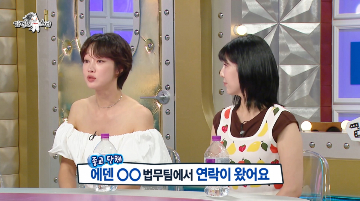 최여진이남편의소문과연관된사이비종교로부터해명을해달라는요청을받았다./사진=MBC'라디오스타'캡처루머에대해설명하는최여진./사진=MBC'라디오스타'캡처최여진의녹화를지켜보는예비남편./사진=MBC'라디오스타'캡처최여진의예비남편이사이비종교교주아들이라는소문이돌고있는가운데최여진이해당종교로부터해명해달라는요청을받았다.28일방영된MBC'라디오스타'916회에서는'노빠꾸언니들'특집으로이경실과최여진,사유리,이호선이출연해입담을나눴다.최여진은"방송에서결혼소식을알렸더니사람들이가만히두질않는다.아직도루머가많다"며해명하고싶다는마음을내비쳤다.이어"사이비교주아들이라고하고재벌H가혼외자식이라고도한다.H그룹사람들과외모가비슷하긴하다"며"가만히있으면가마니로본다.그억측이억측을만들고또다른논란을만든다.나답게정면돌파하는게바르다고생각했다"고덧붙였다.과거최여진은예비남편과친구시절에전처와한예능프로그램에출연했었다.당시예비남편은이혼전이었고최여진은전처와도밥을먹으며친분이두터운사이였다.최여진은"프로그램에서제작진이같이따뜻하게밥먹는장면이있었으면좋겠다고요청했다.어느정도설정은구성상필요하다.만들어진장면"이라고말했다.또사이비교주아들설에대해서최여진은"가평에알다시피돈많은종교재단이있다.예비남편이운영하는곳이름이'OO에덴'이라서에덴동산과연관이있는게아니냐는말이나왔다"고설명했다.이어"너무어이없는얘기라서웃고넘어갔다.논란이증폭되니까에덴동산법무팀에서'제발해명좀해달라'연락이왔다"며루머에대해서전면부인했다.김유진기자[email protected]©머니투데이&mt.co.kr.무단전재및재배포,AI학습이용금지