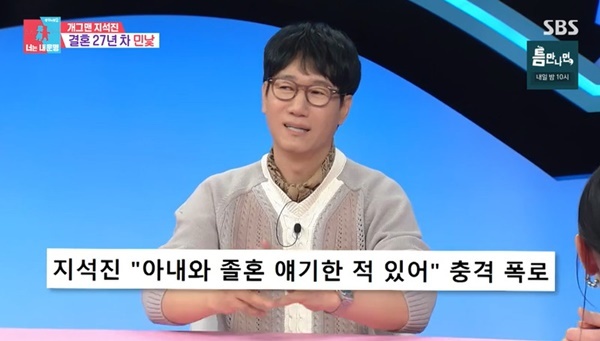 SBS‘동상이몽2너는내운명’캡처SBS‘동상이몽2너는내운명’캡처[뉴스엔유경상기자]지석진이환갑에졸혼폭탄발언을부인했다.5월26일방송된SBS‘동상이몽시즌2-너는내운명’에서는게스트로결혼27년차개그맨지석진이출연했다.서장훈은지석진에게“환갑에졸혼하겠다고폭탄발언을했는데만으로1년남았다”고말했고지석진은“졸혼하겠다고말한기억도없다.언젠가인터뷰를했을거다.졸혼열풍일때좋은제도같다,이혼보다낫지않냐그랬을거”라고말했다.이어지석진이“안싸우는부부는없는것같다”고말하자김구라는“저는싸우지않는다.의견을교환할뿐”이라고반박했다.지석진은“말만들어도짜증이난다.부부가감성으로대화해야지논리적으로만”이라고응수했다.또지석진은“모든부부가위기가있다.저도위기가있었다.저는그위기를잘극복한케이스”라고말했고김숙이“반성문쓰는걸로유명했다”고하자지석진은“반성문보다각서가편하다고했다.반성문은내가생각해야하고각서는부르는대로쓰면된다”고인정했다.서장훈은“반성할일이뭐그렇게많냐.술도안드시고밖으로안나돌지않냐”고의아해했고지석진은“큰일로쓰는게아니다.화가나서베개를던졌다.좀세게옮길수있다.그리고나가서로션을바르는데뚝떨어진거다.일부러떨어트린것같지않냐.말을해야한다.왜떨어지고난리야.문닫히는것과비슷하다.그런걸로반성한다는게속상하긴하다”고말했다.김숙이“60세앞두고”라며웃자지석진은“이런걸로반성해야하나.우리집이야기를다했다.얼떨결에”라고씁쓸해했다.(사진=SBS‘동상이몽2너는내운명’캡처)뉴스엔유경상yooks@기사제보및보도자료[email protected]ⓒ뉴스엔.무단전재&재배포금지Copyright©뉴스엔.무단전재및재배포금지.