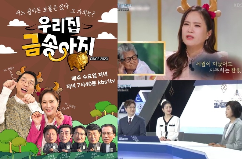 KBS‘TV비평시청자데스크’KBS프로그램을말하다…지역제작한계를극복하고전국시청자만나는‘우리집금송아지’높이평가출연자층고령어르신에서젊은세대로확장하여200회,300회금송아지기대지난25일방송된KBS1TV‘TV비평시청자데스크…KBS프로그램을말하다’에서지난4월30일방송된‘우리집금송아지’100회특집을자세히분석했다.이날출연한나은희시청자평가위원은‘우리집금송아지’가지역단위의제작한계를극복하고전국방송으로당당히인정받아시청자를만나고있는점을강조하면서“출연자와의소통을즐기고시청자와의만남에앞장서고있는지금의능동적인제작방향이힘을잃지않고인기의토대로굳건히자리매김하기하길바란다”면서“100회의기쁨에만족하지않고대한민국방방곡곡찾아가200회,300회특집으로거듭나는또하나의장수프로그램이되기를기대한다”고밝혔다.나위원은‘우리집금송아지’가단순히애장품에감정가를매기는예능프로그램이아니라애장품에담긴다양한사연을끌어내어감정가이상의가치를시청자에게전달하는공익적메시지를품은지역맞춤형토크버라이어티프로그램이라는정체성을부여했다.물질과금전만능주의에서한걸음뒤로물러나마음의여유를주는‘우리집금송아지’는‘소통과공감’의가치뿐아니라,지역단위의제작한계를극복하고전국방송으로당당히인정받아시청자를만나고있는점또한시사하는바가크다고했다.그러면서“2023년3월10일KBS전주총국자체방송으로출발해2024년7월전국방송으로확장된점은매우의미가크다.우리집금송아지제작진은20대청춘을방불케하는90대노부부등사별한반려자를그리워하는어르신들의삶을재조명하고,역사문화적가치가큰감정품도많이찾아냈다”며“보물급가치가큰국청(鞫廳)일기,2억원이상고택기와를발굴하는등문화⬝역사적의미가클뿐아니라배우자부모가남긴유품을불러내가족이야기를끌어내가족의의미를되새기는좋은프로그램”이라며제작진에게방향성을묻기도했다.이에대해맹남주책임PD(우리집금송아지)는“제작시청층이전북권에서전국적으로확장되면서가장크게달라진점이라면특정지역에치우치지않도록지역배분에신경을썼고,우리동네금송아지코너에서해당지역의명승고적을소개하는일을통해지역경제에조금이나마도움이될수있도록노력했다”며“연출과구성을할때는소장품의희귀성이나감정금액보다출연자들의사연에집중함으로써‘6시내고향’이나‘동네한바퀴’처럼사람냄새가가득한공영방송KBS의전통을잇고자했다”고말했다.나위원은“100회특집에서특히인상적이었던점은출연자와의소통을이어준두진행자였다.가수김정연씨와개그맨정범균씨의활약상에서도찾을수있습니다.카메라에익숙치않은일반인이자연스럽게스며들수있도록분위기를이끌어간두사람의노력이온전히느껴졌다”며특히“좋아하는가수를보고싶다거나오래전에연락이끊긴친구를찾고싶다는출연자소원을잊지않고해결해준제작진의열의가진심으로와닿았다.방송에서출연자들의소망을잊지않고들어주는등출연자와소통을위한적극적인태도가인상적이었다”는시청소감을밝히고,“우리집금송아지가200회,300회까지이어가장수프로그램으로굳건히자리매김하기를바란다”고강조했다.1144회‘TV비평시청자데스크’에서확인한‘우리집금송아지’의가치는공영방송이품어야할미래상이기도하다.가정의달5월,가족의의미,마을공동체의의미를되새겨보게한‘KBS프로그램을말하다–우리집금송아지’편은방송을넘어선사회적메시지를전달하며시청자에게깊은인상을남겼다.강석봉기자[email protected]©스포츠경향.무단전재및재배포금지.