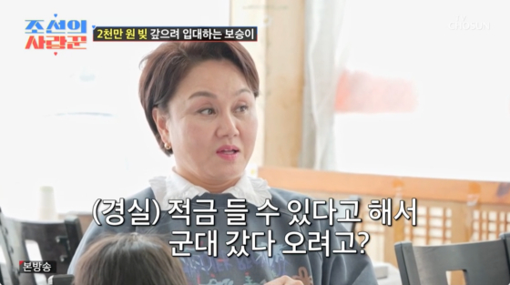 [스타뉴스|김노을기자]/사진=TV조선방송화면코미디언이경실이아들손보승의입대선언에깜짝놀랐다.26일방송된TV조선예능프로그램'조선의사랑꾼'에서는이경실이아들손보승,손자이훈과함께충남논산딸기체험에나선모습이그려졌다.이날손보승은딸기체험도중이경실에게"입대영장이나와서6월4일에군대가려고한다"고깜짝입대를선언했다.깜짝놀란이경실은"정말이냐.거짓말아니냐.나중에'뻥이야'이러는거아니냐"면서도"잘됐다.빨리다녀오는게낫다.그래서논산에오자고한거였냐"고손보승을격려했다./사진=TV조선방송화면손보승이"눈물나지않냐"고묻자이경실은"하나도안난다.군대를다녀오면일하는데있어서홀가분할것"이라고답했다.이후식당으로이동한손보승은군입대에대한생각을밝혔다.그는"26세라이미늦었고,어차피가야하지않나.그리고요즘엔군대적금이좋아졌다고한다"고말했다.이어"한달에55만원씩넣으면전역할때2천만원이상준다고하더라.엄마한테빌린돈도그걸로갚으면될것같다"고털어놨다.손보승은아직어린아들이훈을걱정했다.이에이경실은"걱정하지마라.엄마가너를그냥보고만있겠냐.다도와줄거다"고손보승을안심시켰다./사진=TV조선방송화면이를보던MC들은"손보승은지금(이경실이)'돈갚지마라.괜찮다'는말을하길바라는마음에서저렇게말하는것같다"고손보승의속을간파해웃음을안겼다.이경실은제작진과인터뷰에서"내가돈을갚으라고한적도없는데자기혼자그런생각을한것같다.돈을갚는다고해서그돈을덥석받겠냐.그런마음을스스로먹는다는게기특하더라"고전했다.한편손보승은2021년23세나이로비연예인여성과혼전임신소식을전한후이듬해득남했다.이에이경실은손보승과1년간절연한사실을밝혀화제를모았다.김노을기자[email protected]©스타뉴스&starnewskorea.com,무단전재및재배포금지