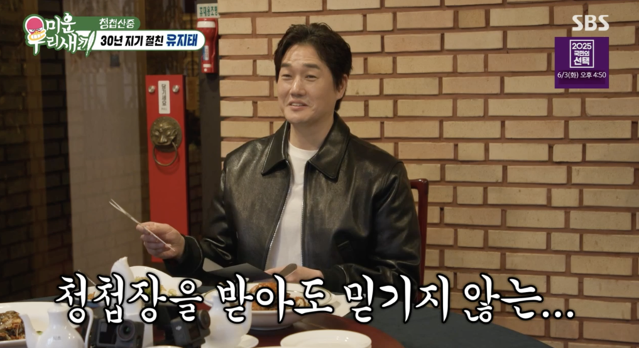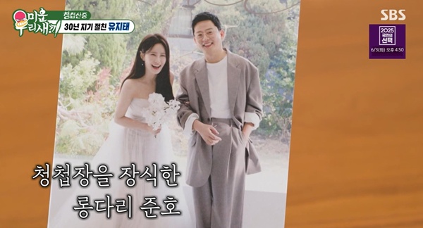 ▲사진|'미우새'방송하면[스포티비뉴스=배선영기자]7월결혼을앞둔김준호가절친유지태를만나청첩장을건넸다.25일방송된SBS예능프로그램'미운우리새끼'(이하미우새)에서김준호는중식당에서유지태를만나청첩장을전했다.이날김준호가청첩장을전하자유지태는"이런걸다받아본다.진짜결혼하는거냐"라고반응했다.이어유지태는"잘어울린다"라고덕담을전했다.유지태는"어떻게결혼할생각을했냐.너무아깝잖아지민씨가"라고물었고,김준호는"마지막여인으로생각하고사랑을하게됐다"라며웃었다.한편두사람은단국대연극영화가동기로,30년지기절친으로알려졌다.<저작권자ⓒSPOTVNEWS.무단전재및재배포금지>Copyright©스포티비뉴스.무단전재및재배포금지.