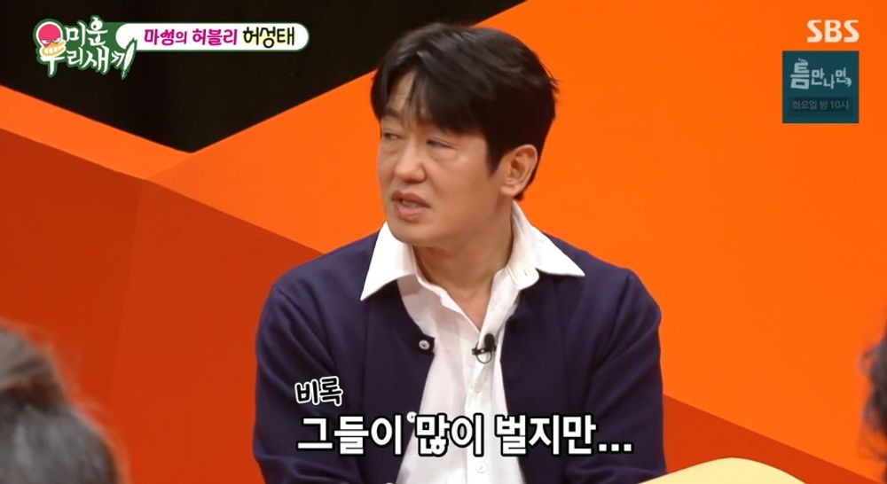 SBS‘미운우리새끼’캡처SBS‘미운우리새끼’캡처[뉴스엔유경상기자]허성태가모친과닮은꼴붕어빵이라밝혔다.5월25일방송된SBS‘미운우리새끼’에서는게스트로배우허성태가출연했다.허성태출연에서장훈은“양가부모님이여행가실때마다양쪽으로거액의플렉스를하신다고?”라고질문했고허성태는모친과친구분들까지함께한여행가이드역할을한영상을공개했다.모벤져스가“누가어머니냐”고묻자허성태는자신과가장닮은사람이어머니라며“진짜닮았다.여자허성태라고해도믿는다”고표현했다.허성태는어머니와친구분들이놀러가실때마침스케줄이없었다며“어차피놀바에는렌트를해서.2박3일함께다니면서제가느껴지는감정이많더라”고말했다.신동엽이“너무잘했다.정말효도한거”라고칭찬하자허성태는“뿌듯하더라”고말했다.또신동엽이‘SNL’에서화제가된춤을언급하자허성태는“졸업하고싶다”면서도유행하는챌린지가있으면찾아본다고털어놨다.(사진=SBS‘미운우리새끼’캡처)뉴스엔유경상yooks@기사제보및보도자료[email protected]ⓒ뉴스엔.무단전재&재배포금지Copyright©뉴스엔.무단전재및재배포금지.